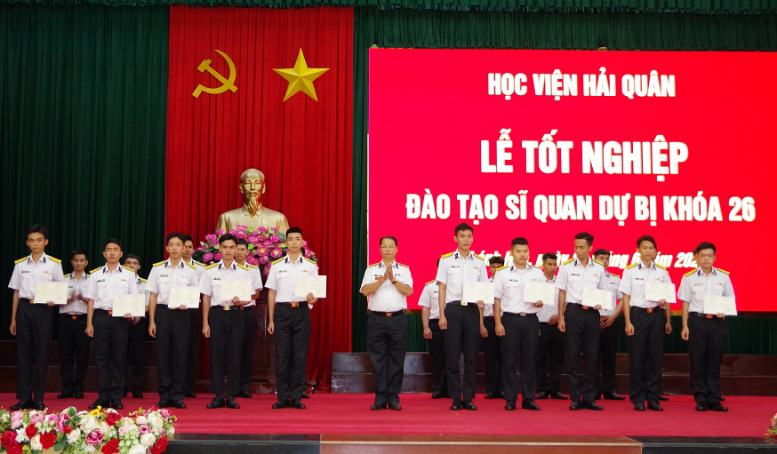 Sáng 28/6, tại TP. Nha Trang, tỉnh Khánh Hòa, Học viện Hải quân tổ chức Lễ tốt nghiệp đào tạo sĩ quan dự bị Khóa 26. Đại tá Lê Hồng Chiến, Phó Giám đốc Học viện chủ trì.