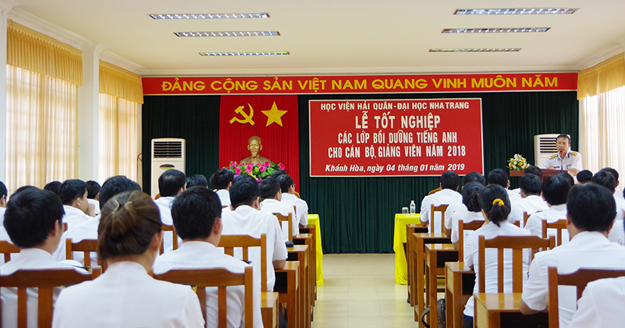 Ngày 4-1, tại Khánh Hòa, Học viện Hải quân phối hợp với Trường Đại học Nha Trang tổ chức Lễ tốt nghiệp lớp tiếng Anh đạt trình độ bậc 2 và bậc 3 cho cán bộ, giảng viên trong Học viện.