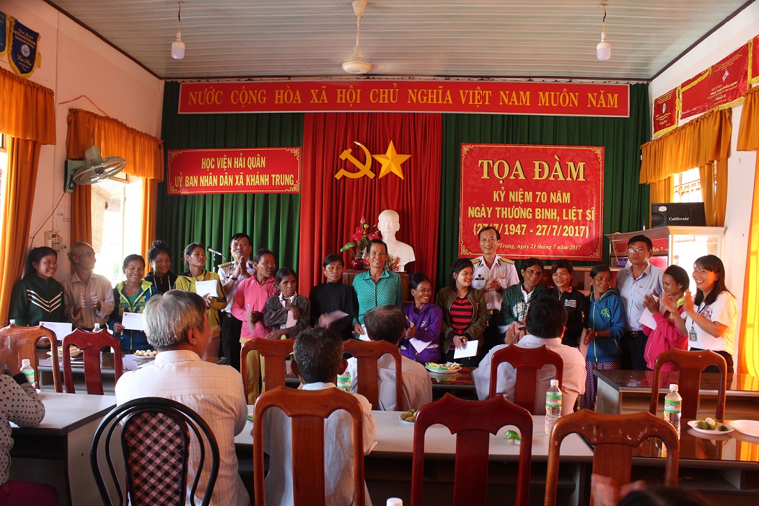 Từ 20 đến 24-7, tại Khánh Hòa, Học viện Hải quân đã tổ chức các hoạt động tri ân nhân kỷ niệm 70 năm, Ngày Thương binh-Liệt sĩ (27-7-1947 – 27-7-2017). Học viện đã tặng quà trị giá hơn 100 triệu đồng tới các gia đình chính sách trên địa bàn đóng quân.