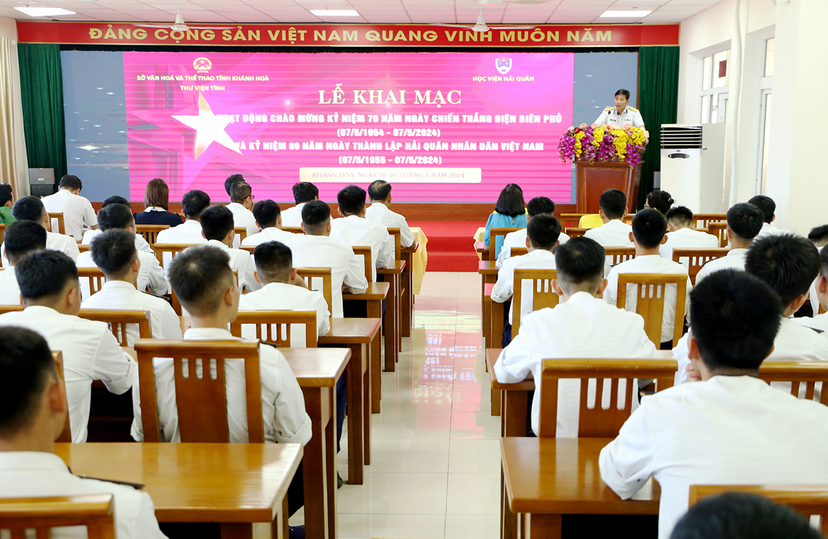 Ngày 6/5, tại TP. Nha Trang, Học viện Hải quân phối hợp với Thư viện tỉnh Khánh Hoà tổ chức trưng bày sách; giới thiệu tác giả, tác phẩm nhân dịp kỷ niệm 70 năm Chiến thắng Điện Biên Phủ và 69 năm Ngày thành lập Hải quân Nhân dân Việt Nam với chủ đề “Điện Biên - Vang mãi bản hùng ca”.