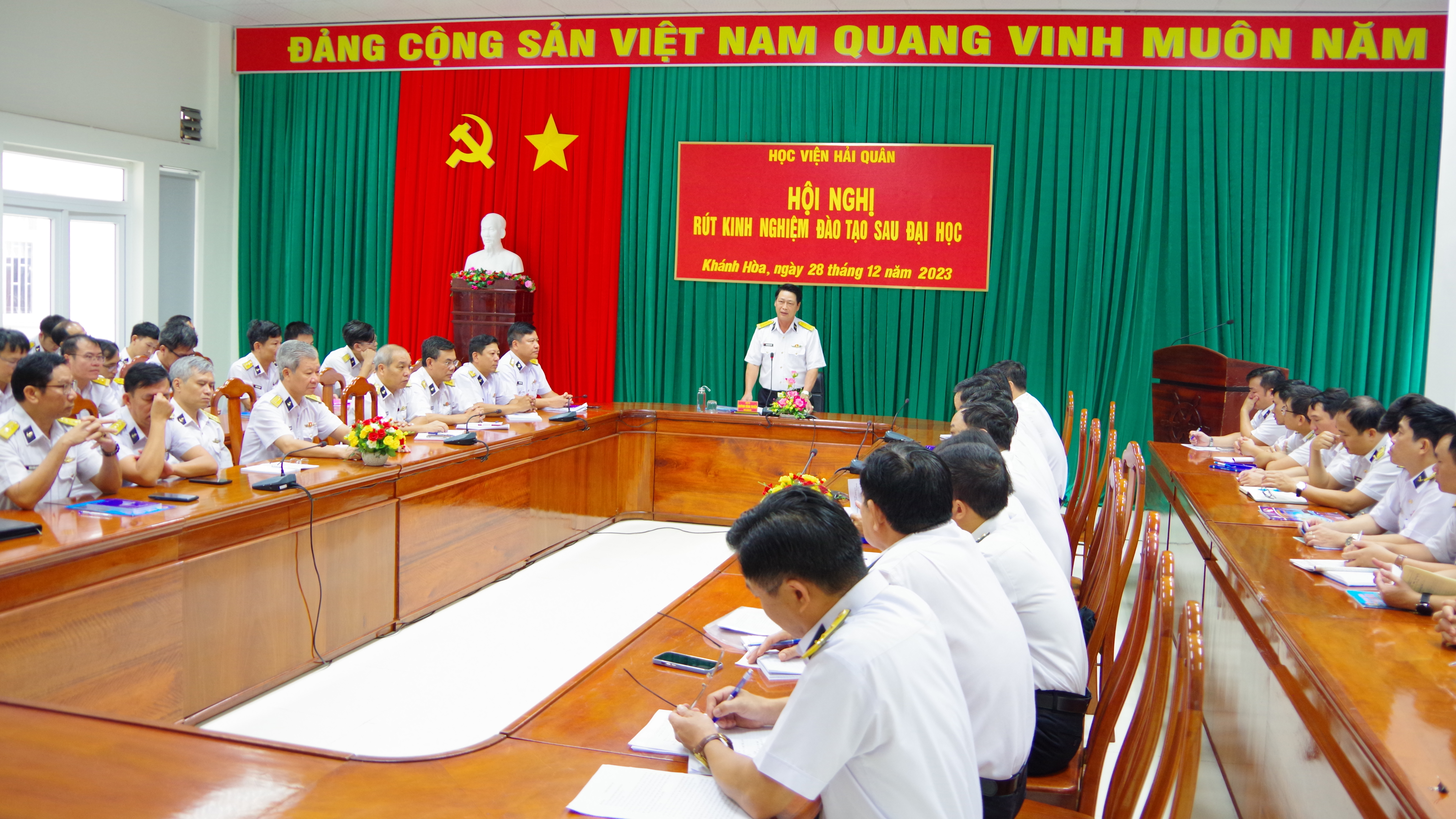 Báo cáo trung tâm của hội nghị nhấn mạnh: Học viện Hải quân đã bám sát các quy chế đào tạo trình độ thạc sĩ, tiến sĩ của Bộ Giáo dục và Đào tạo, các văn bản hướng dẫn chỉ đạo về công tác đào tạo sau đại học của Bộ Quốc phòng; kịp thời ban hành quy chế và các văn bản quy định, hướng dẫn và quản lý công tác đào tạo sau đại học.