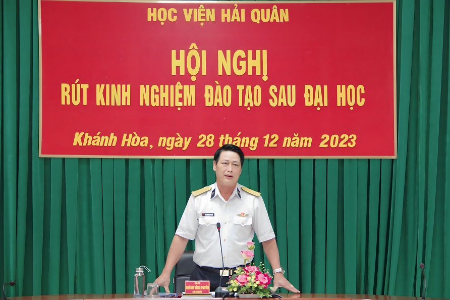Chiều 28/12, tại TP. Nha Trang, tỉnh Khánh Hòa, Học viện Hải quân tổ chức Hội nghị rút kinh nghiệm đào tạo sau đại học. Đại tá, PGS, TS Huỳnh Vĩnh Tuyến, Phó Giám đốc Học viện chủ trì.