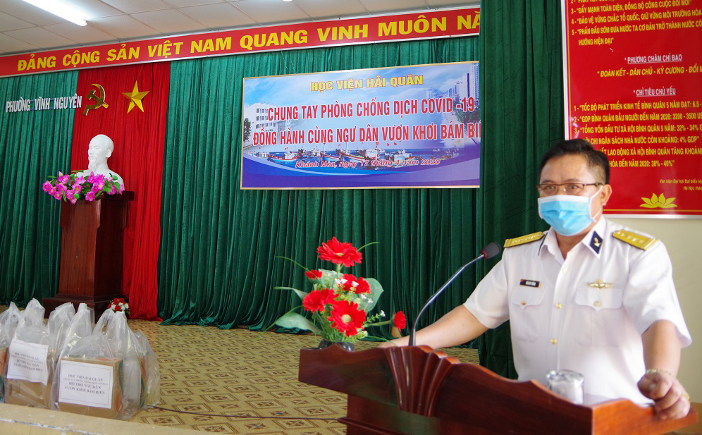 Ngày 17-4, đoàn công tác của Học viện Hải quân do Đại tá Bùi Duy Thống, Phó Chính ủy Học viện làm trưởng đoàn đã đến thăm, tặng quà, hỗ trợ các ngư dân TP. Nha Trang có hoàn cảnh khó khăn bị ảnh hưởng do dịch Covid-19.