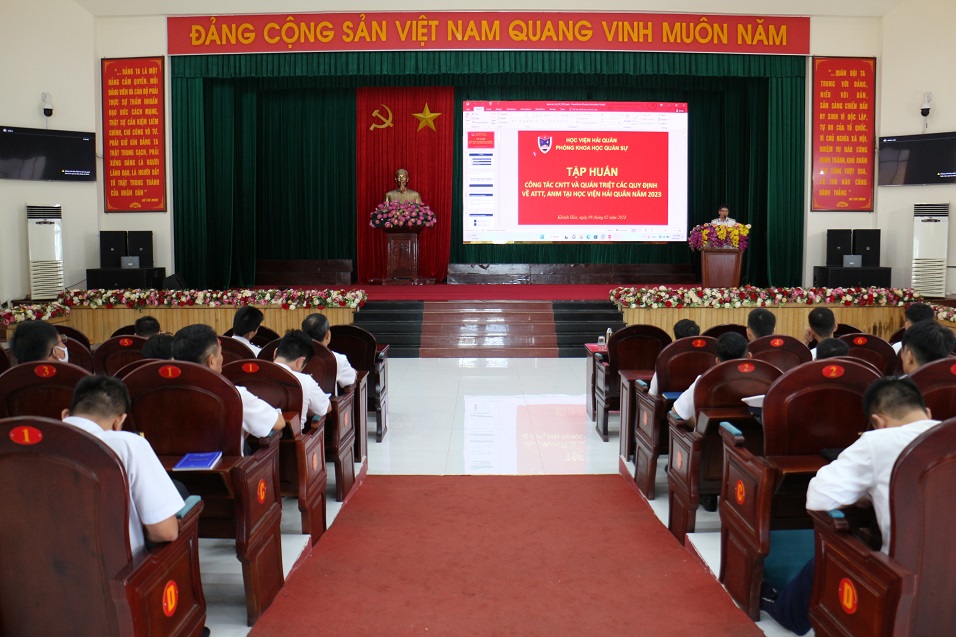 Chiều 8/2, tại TP. Nha Trang, tỉnh Khánh Hòa, Học viện Hải quân tổ chức Hội nghị tập huấn công tác công nghệ thông tin và quán triệt các quy định về an toàn thông tin, an ninh mạng. Thượng tá Hà Thành Lâm, Phó trưởng phòng Khoa học quân sự Học viện chủ trì.