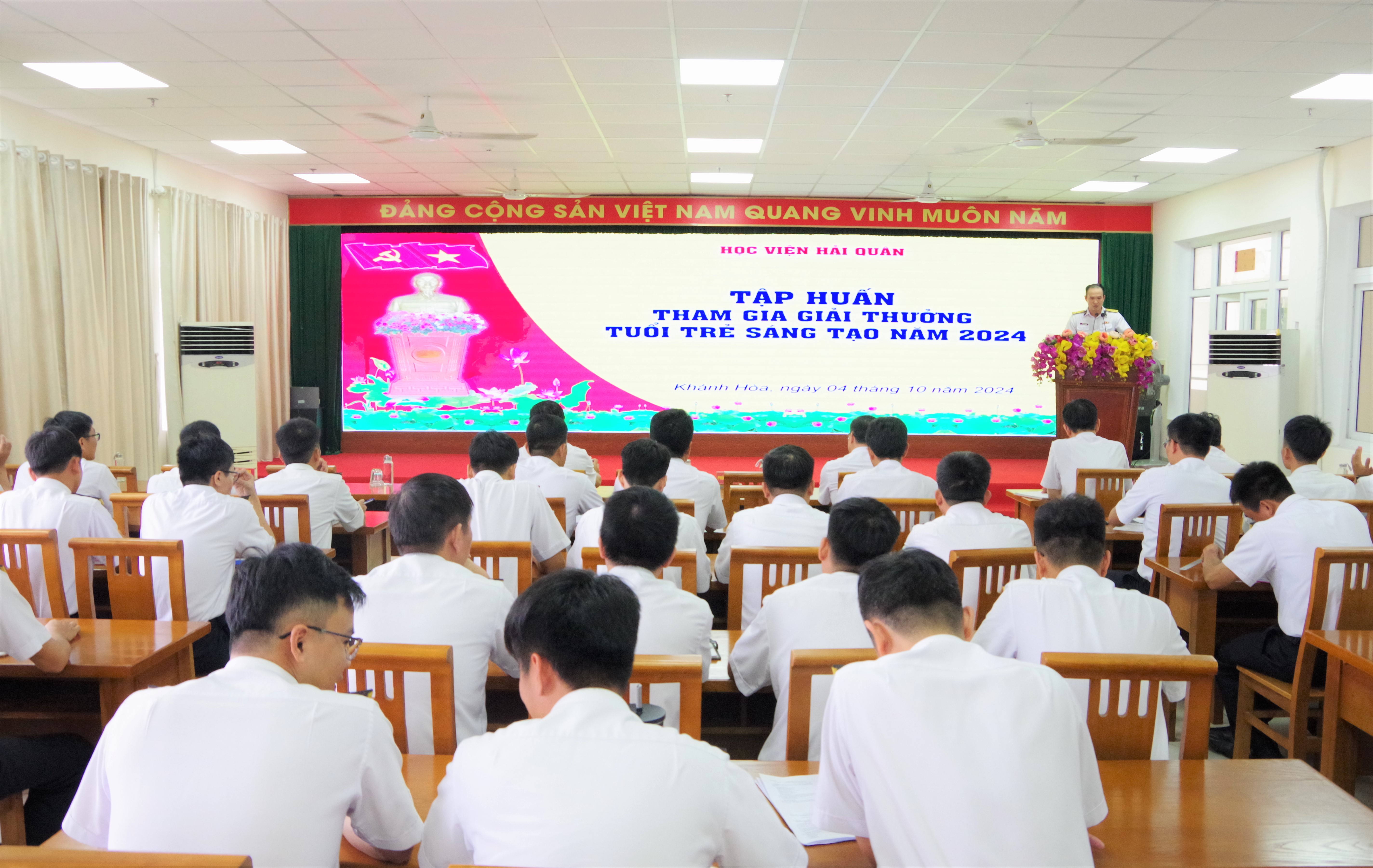 Chiều 4/10, tại TP. Nha Trang, tỉnh Khánh Hòa, Học viện Hải quân tổ chức tập huấn tham gia giải thưởng Tuổi trẻ sáng tạo (TTST) năm 2024 cho hơn 100 cán bộ, giảng viên trẻ và học viên.