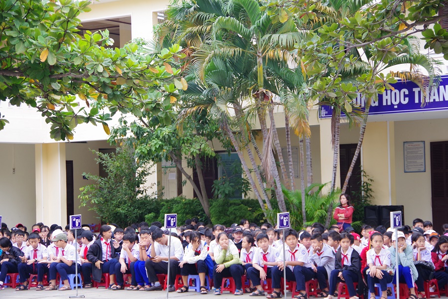 Các em học sinh Trường THCS Lê Thanh Liêm tham dự buổi tuyên truyền