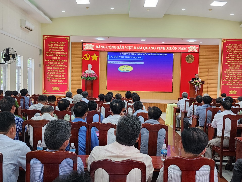 Đại tá Nguyễn Văn Tôn, Phó Chủ nhiệm Chính trị Học viện Hải quân đã thông tin tới các đại biểu về vị trí, vai trò của biển đảo; những nét mới về tình hình Biển Đông và vùng biển Tây Nam trong thời gian gần đây; tình hình chiến sự Nga - Ucraina; chủ trương, đối sách của Đảng, Nhà nước ta về vấn đề Biển Đông và những vấn đề lớn đang diễn ra trên thế giới.