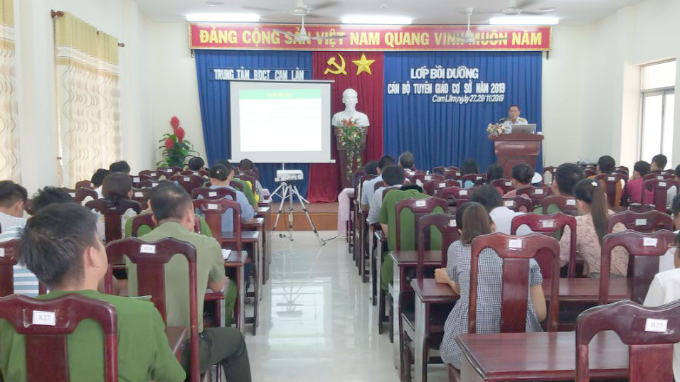 Chiều 29-11, Học viện Hải quân phối hợp với Trung tâm Bồi dưỡng Chính trị huyện Cam Lâm, tỉnh Khánh Hòa thông tin về tình hình biển, đảo cho gần 100 cán bộ huyện Cam Lâm tại Lớp bồi dưỡng cán bộ tuyên giáo cơ sở.