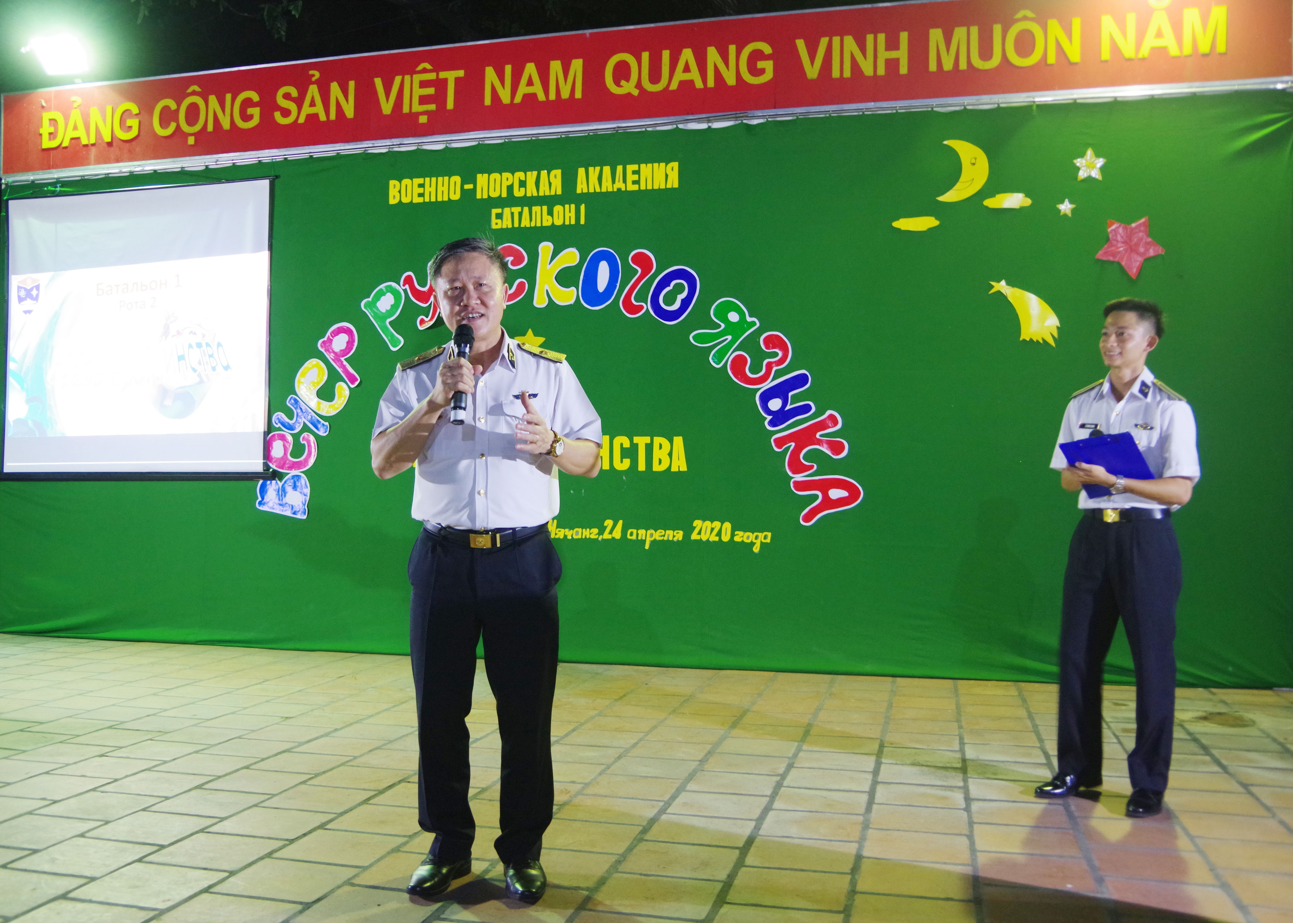 Tối 24-4, tại TP. Nha Trang, tỉnh Khánh Hòa, Câu lạc bộ tiếng Nga, Tiểu đoàn 1, Học viện Hải quân tổ chức thành công đêm Gala tiếng Nga lần thứ 2 năm 2020. Chuẩn Đô đốc, PGS, TS Nguyễn Văn Lâm, Giám đốc Học viện đến dự.