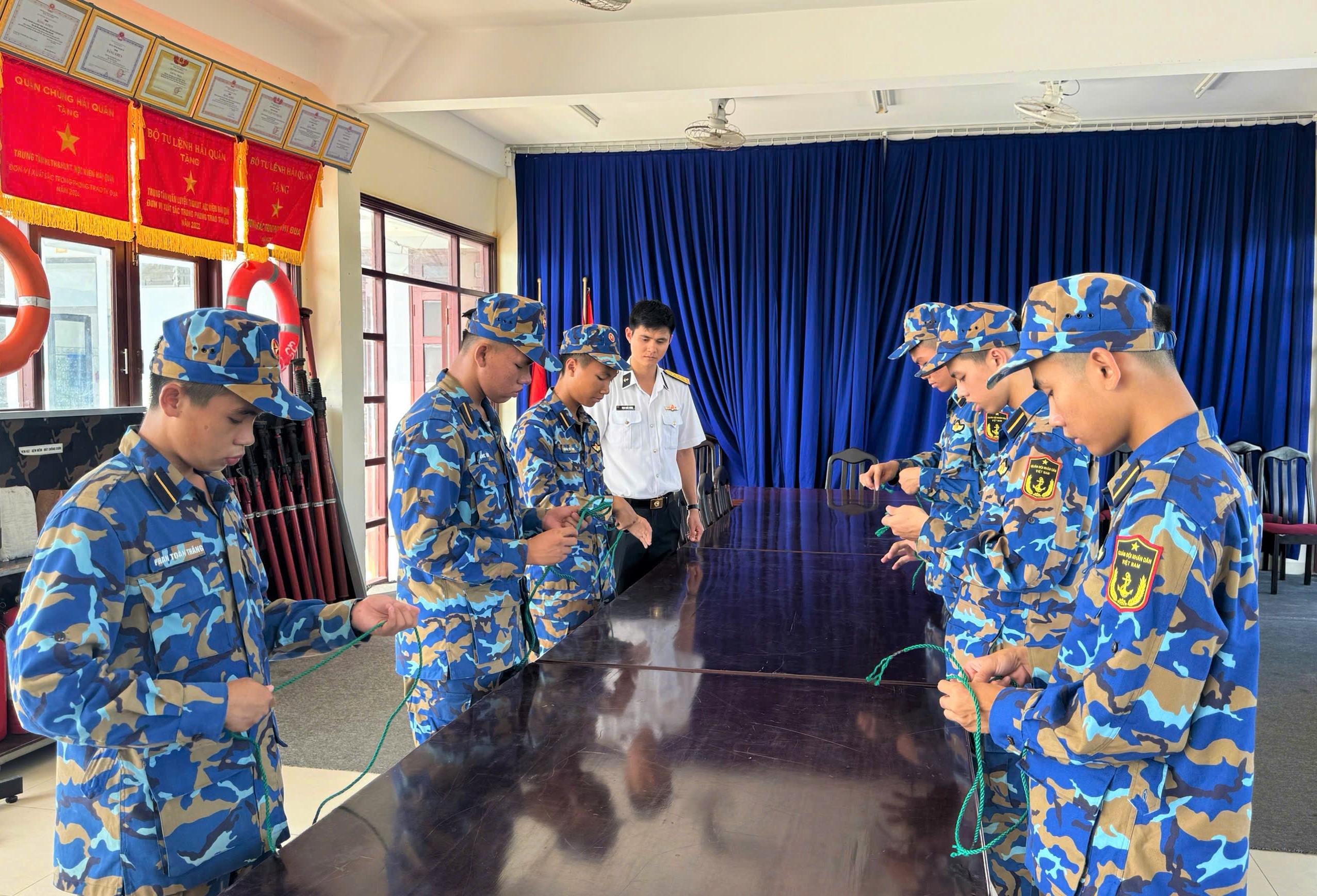 Tham gia hội thao có 6 đội, thực hiện các nội dung thi: lý thuyết; thực hành các nút buộc cơ bản, kỹ thuật chầu đấu dây; phòng chống cháy nổ trên tàu và chèo xuồng.