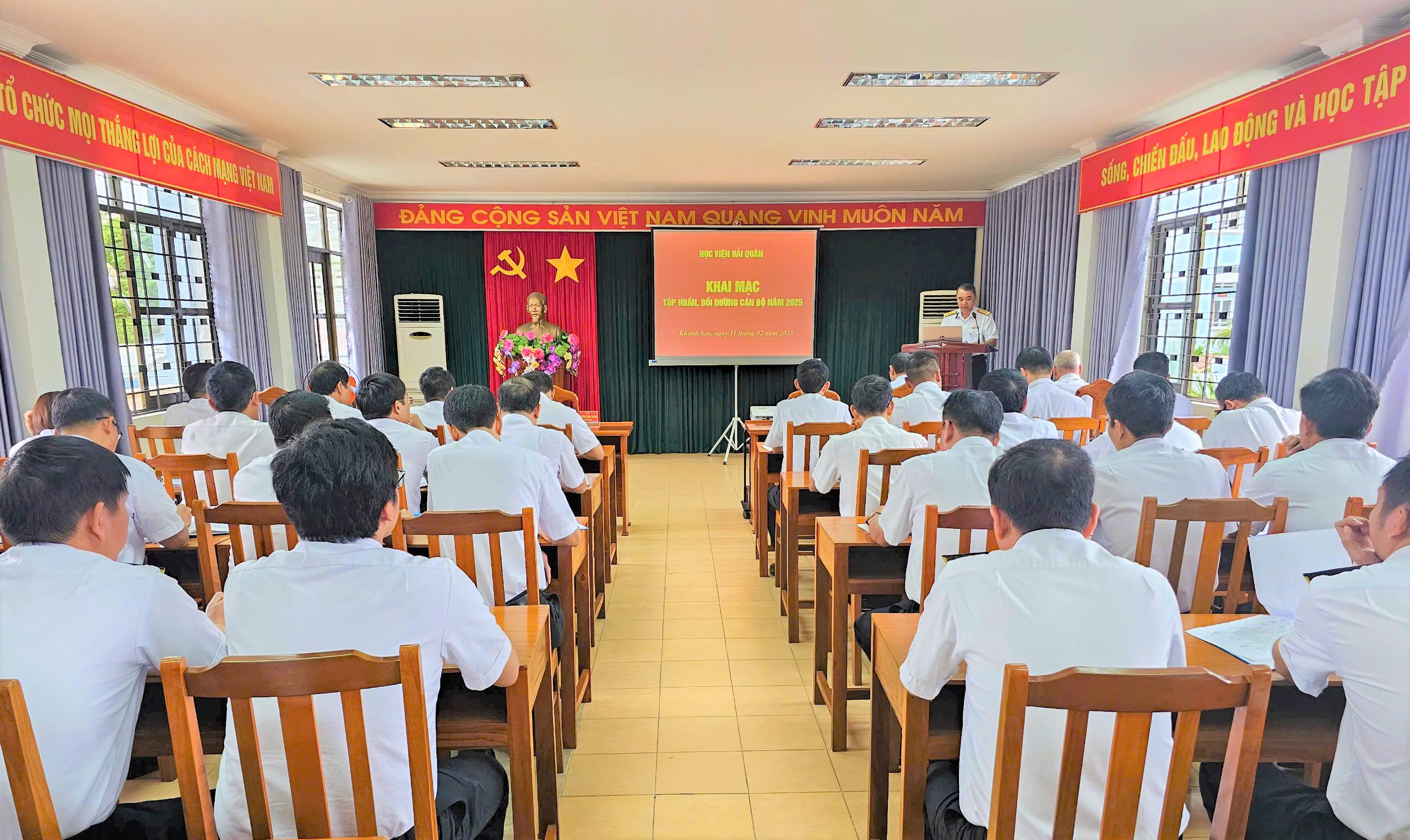 Chiều 11/2, tại TP. Nha Trang (Khánh Hòa), Học viện Hải quân tổ chức khai mạc tập huấn, bồi dưỡng cán bộ năm 2025. Đại tá Nguyễn Đình Giảng, Phó Giám đốc Học viện dự và chỉ đạo.