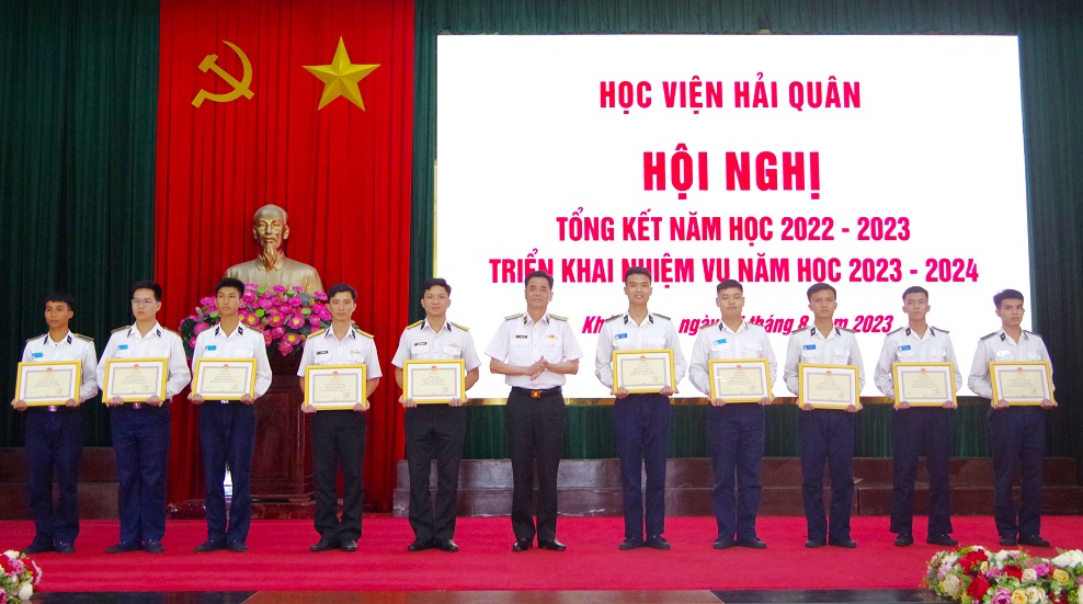 Tại hội nghị, Học viện Hải quân đã công bố và trao quyết định khen thưởng các học viên có thành tích xuất sắc, được tặng danh hiệu “Chiến sĩ thi đua” cấp cơ sở năm học 2022-2023.