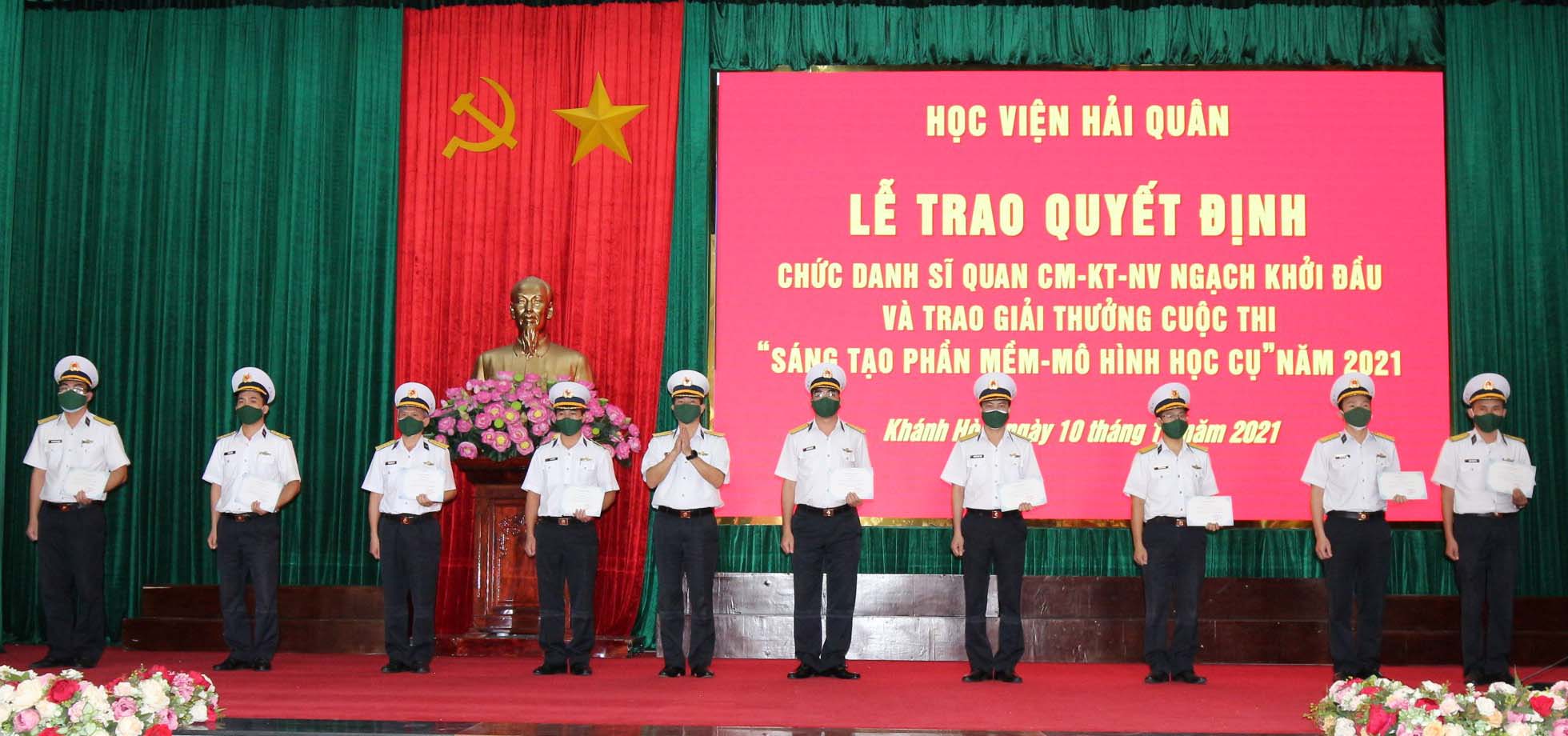 Ngày 10/12, tại TP, Nha Trang, tỉnh Khánh Hòa, Học viện Hải quân đã tổ chức Lễ trao quyết định chức danh sĩ quan chuyên môn–kỹ thuật-nghiệp vụ và giải thưởng Cuộc thi “Sáng tạo phần mềm-mô hình học cụ” năm 2021. Đại tá, TS Hồ Thanh Hòa, Phó Giám đốc Học viện chủ trì.