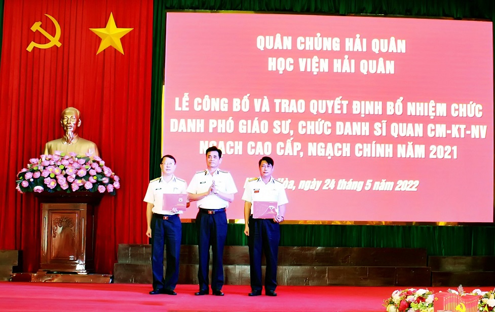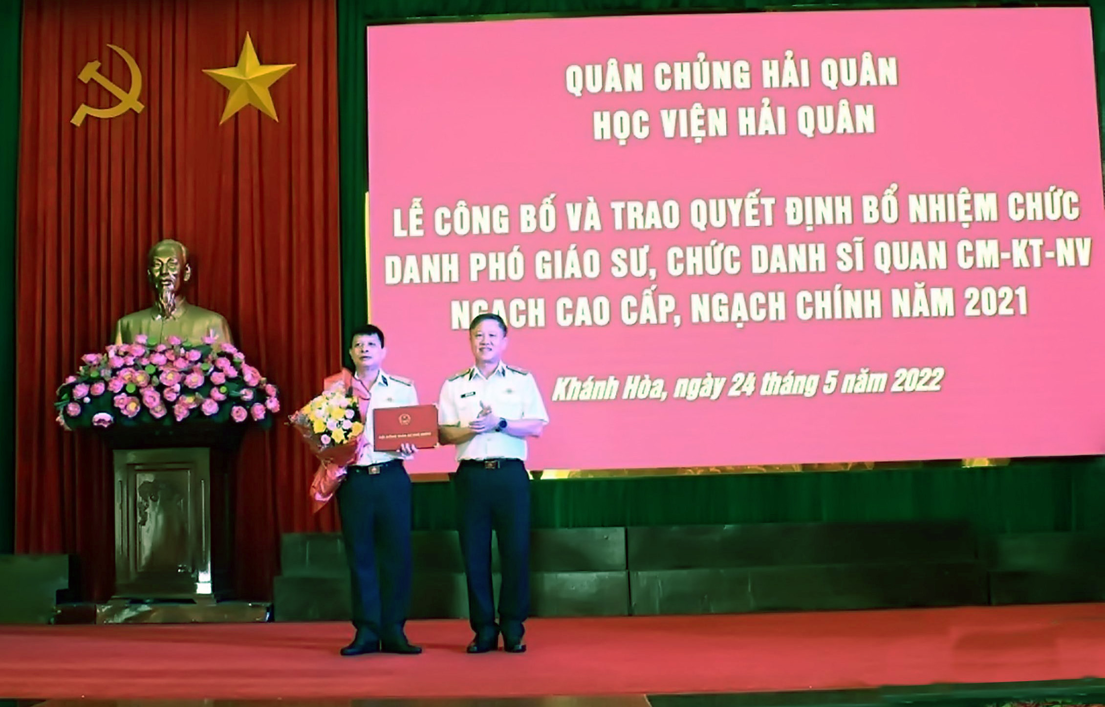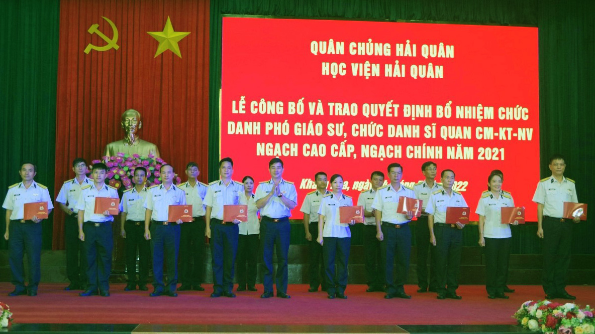 Chiều 24/5, tại TP. Nha Trang, tỉnh Khánh Hòa, Học viện Hải quân tổ chức Lễ công bố và trao quyết định chức danh phó giáo sư và các chức danh CM-KT-NV ngạch cao cấp, ngạch chính năm 2021 cho 21 nhà giáo. Chuẩn Đô đốc Nguyễn Văn Lâm, Giám đốc Học viện chủ trì.