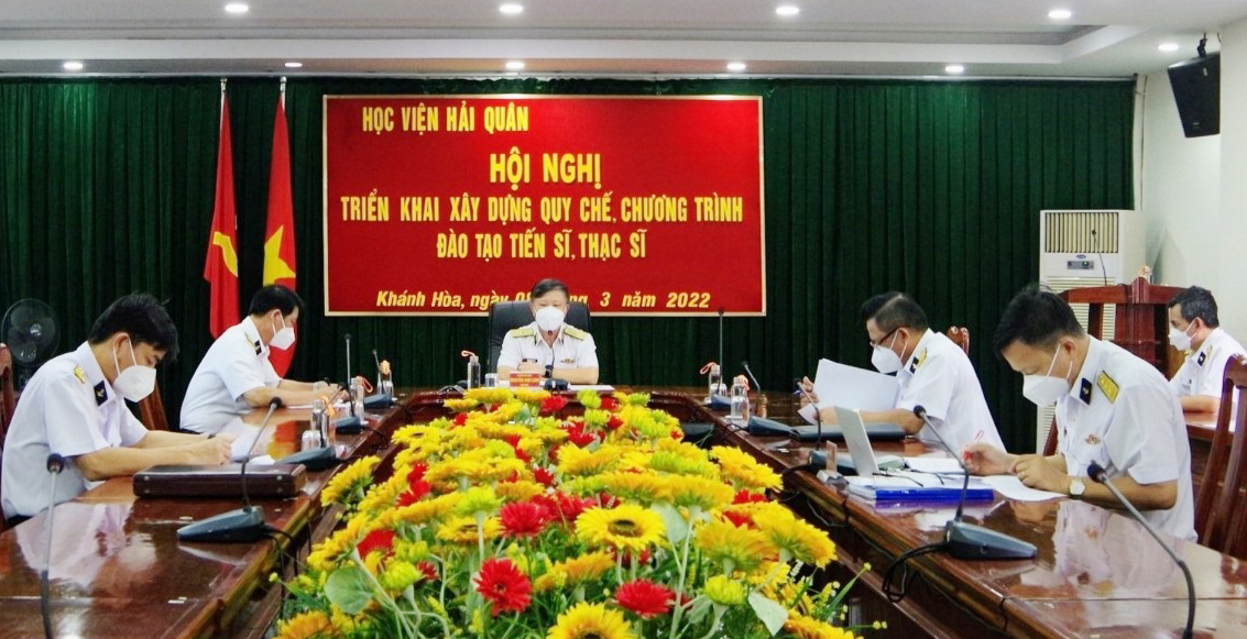 Chiều 8/3, tại Nha Trang, Khánh Hoà, Học viện Hải quân tổ chức Hội nghị triển khai xây dựng quy chế, chương trình đào tạo tiến sĩ, thạc sĩ. Chuẩn đô đốc Nguyễn Văn Lâm, Giám đốc Học viện, Chủ tịch Hội đồng chỉ đạo chủ trì.
