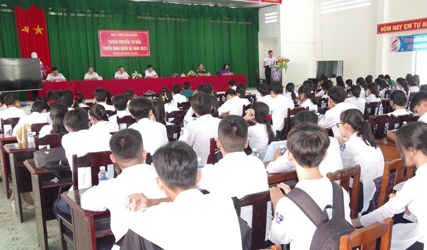 Ngày 8/4, đoàn công tác Ban tuyển sinh quân sự Học viện Hải quân phối hợp với Ban tuyển sinh quân sự tỉnh Bến Tre tổ chức tư vấn, tuyên truyền, hướng nghiệp tuyển sinh quân sự trên địa bàn tỉnh.