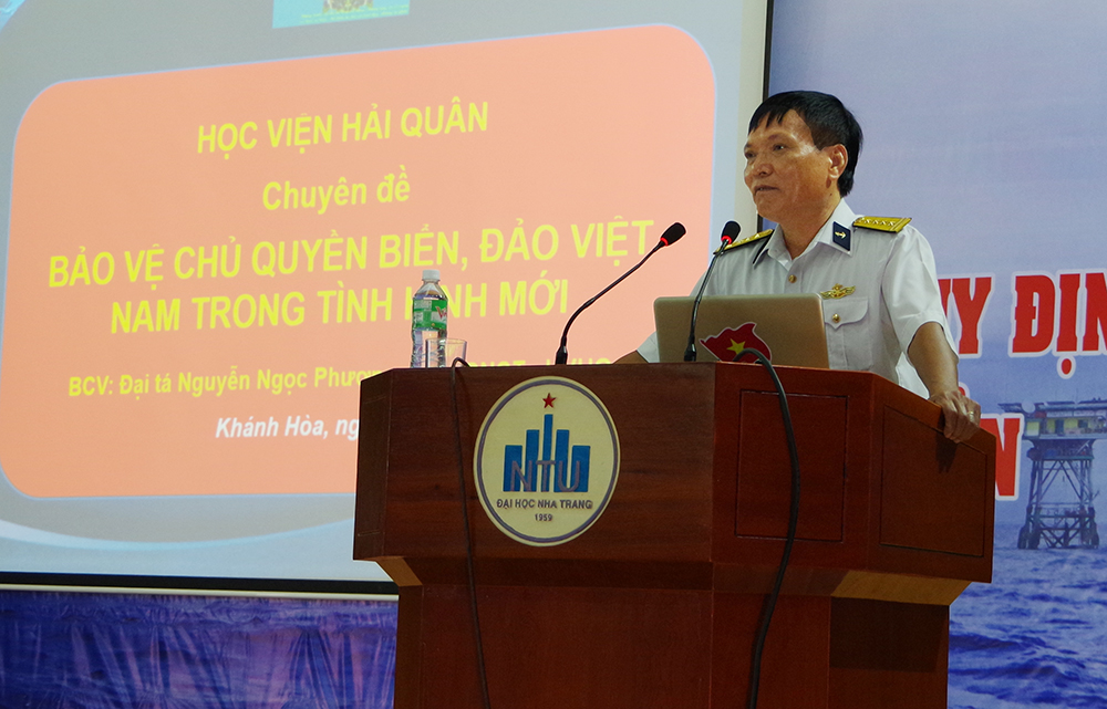 Ngày 28-10, Học viện Hải quân đã tổ chức thông tin về tình hình biển, đảo cho 300 giảng viên, sinh viên của Trường Đại học Nha Trang tại lớp tập huấn về tình hình biển, đảo, khai thác và phát triển bền vững các nguồn lợi từ biển do Tổng cục Thủy sản-Bộ Nông nghiệp và phát triển Nông thôn chủ trì tổ chức, Đại học Nha Trang là đơn vị đăng cai.