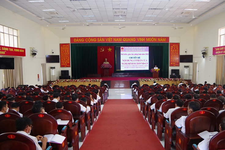 Ngày 4/5, tại TP. Nha Trang, tỉnh Khánh Hòa, Học viện Hải quân phối hợp với Tòa án Quân sự Khu vực Quân chủng Hải quân tuyên truyền, phổ biến, giáo dục pháp luật năm 2022 cho hơn 700 cán bộ, giảng viên, nhân viên. Buổi tuyên truyền được tổ chức theo hình thức trực tuyến từ hội trường đến 3 điểm cầu.