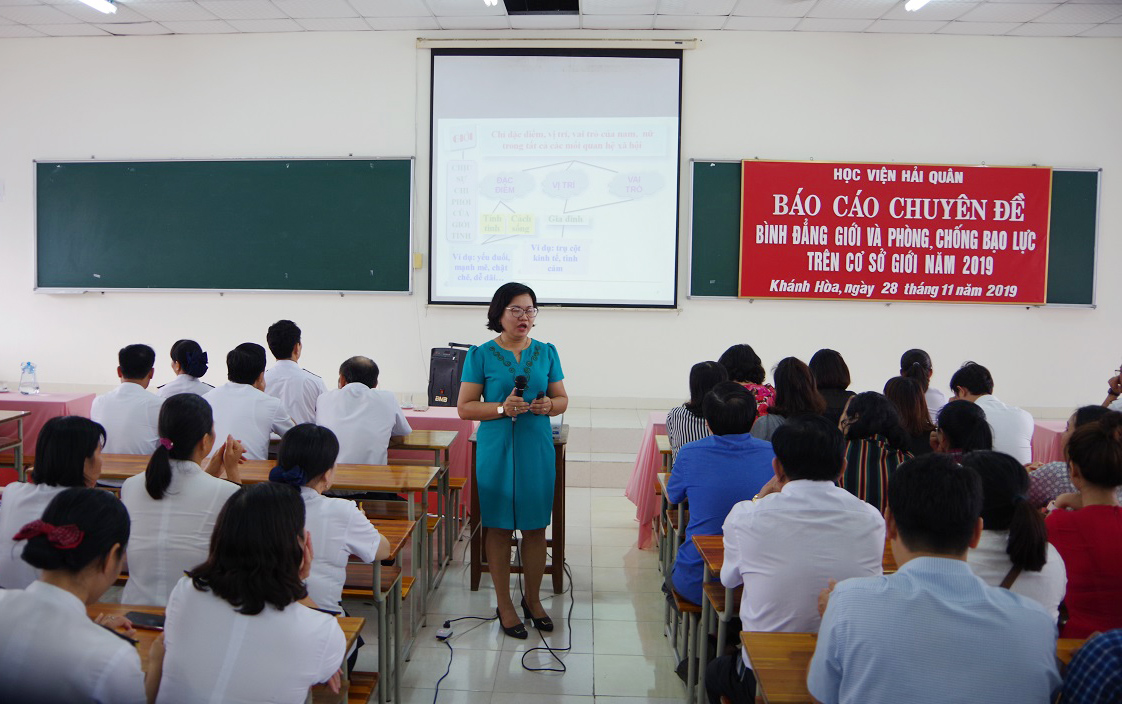 Chiều 28-11, tại TP. Nha Trang, tỉnh Khánh Hòa, Học viện Hải quân phối hợp với Sở Lao động-Thương binh và Xã hội tỉnh Khánh Hòa tổ chức Báo cáo chuyên đề về bình đẳng giới và phòng, chống bạo lực năm 2019.