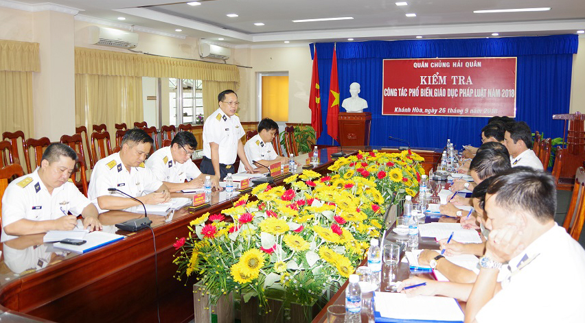 Ngày 26-9, tại Học viện Hải quân, TP. Nha Trang, tỉnh Khánh Hòa, đoàn công tác của Hội đồng phối hợp phổ biến, giáo dục pháp luật (PBGDPL) Quân chủng Hải quân do Đại tá Nguyễn Xuân Thanh, Viện trưởng Viện Kiểm sát quân sự Quân chủng Hải quân làm trưởng đoàn đã đến kiểm tra công tác PBGDPL tại Học viện Hải quân.