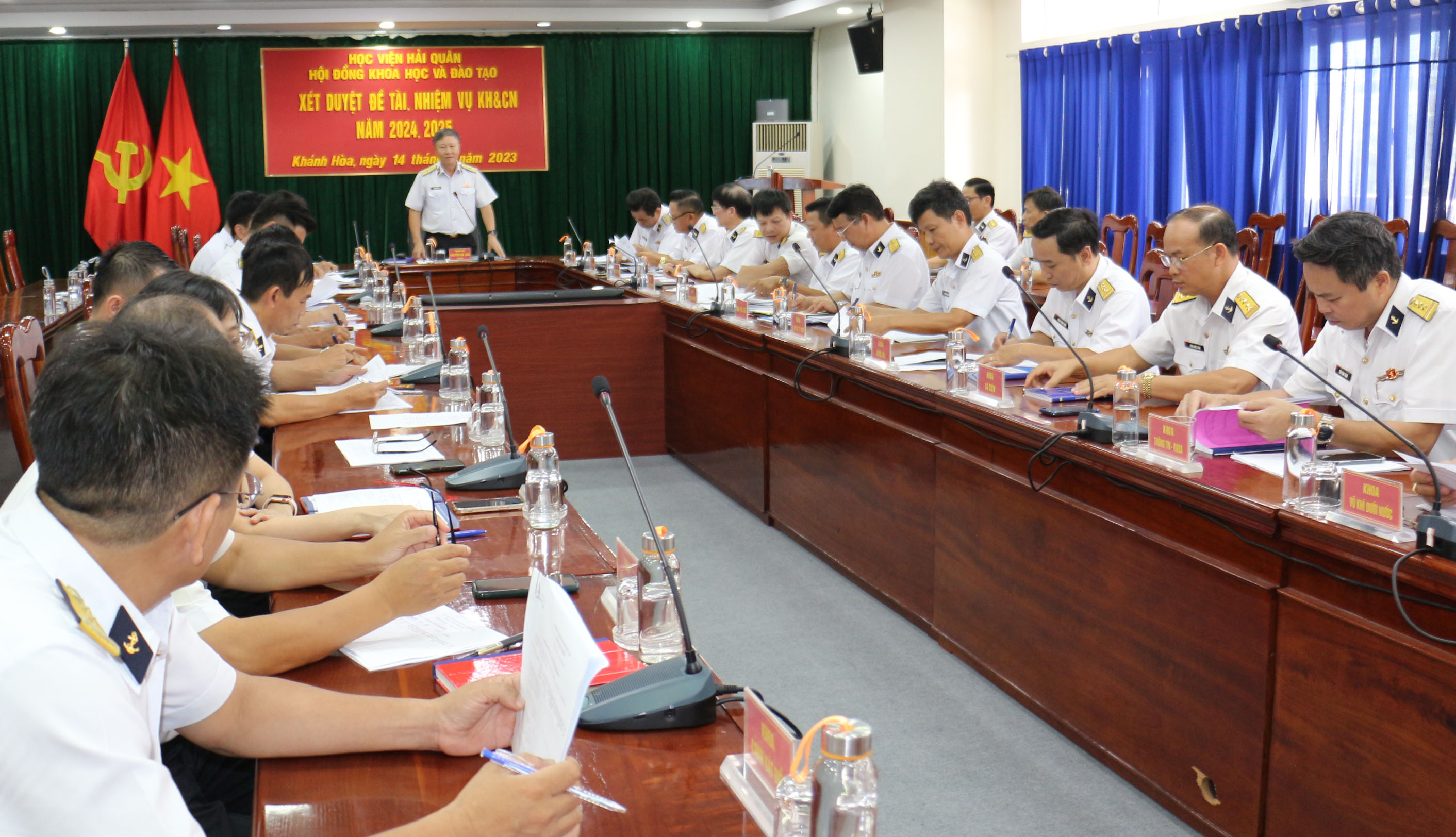 Chiều 14/6, tại TP. Nha Trang, tỉnh Khánh Hòa, Hội đồng khoa học và đào tạo Học viện Hải quân tổ chức phiên họp xét duyệt đề tài, nhiệm vụ khoa học và công nghệ năm 2024-2025.