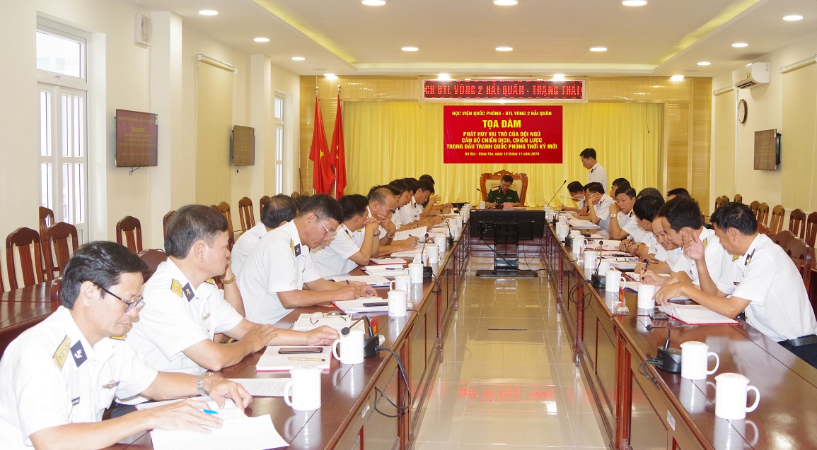 Buổi tọa đàm góp phần thu thập các thông tin cần thiết, làm sáng tỏ cơ sở lý luận và thực tiễn cũng như các giải pháp để phát huy vai trò của đội ngũ cán bộ nói chung, cán bộ chiến dịch, chiến lược nói riêng của Vùng 2 Hải quân trong đấu tranh quốc phòng bảo vệ Tổ quốc thời kỳ mới.