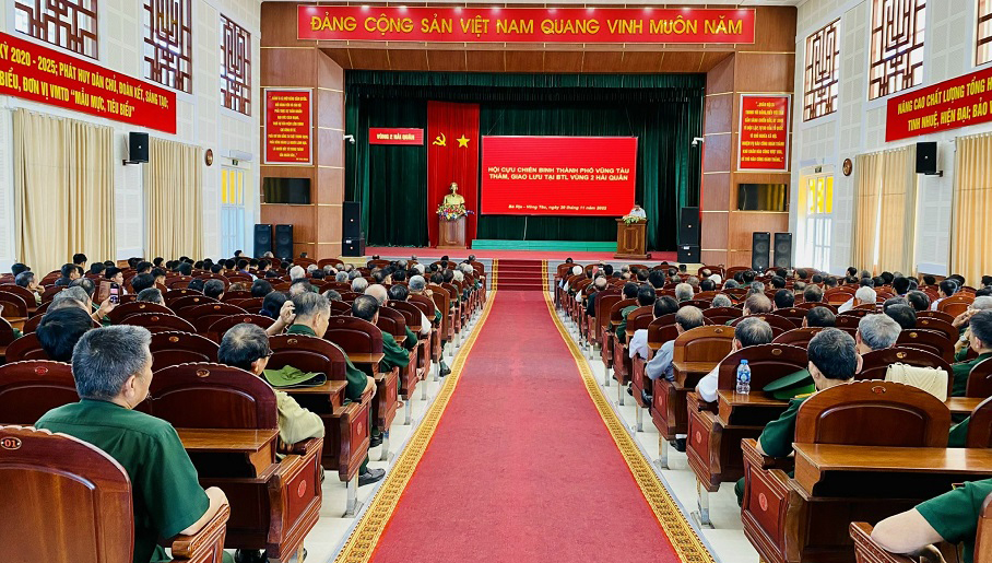 Sáng 29/11, đoàn đại biểu của Hội Cựu chiến binh TP. Vũng Tàu (tỉnh Bà Rịa-Vũng Tàu) do đồng chí Nguyễn Xuân Sơn, Chủ tịch hội dẫn đầu cùng 190 hội viên đã đến thăm, giao lưu với cán bộ, chiến sĩ Vùng 2 Hải quân.