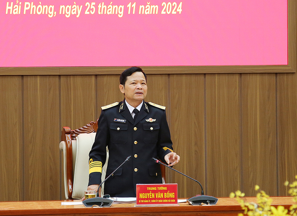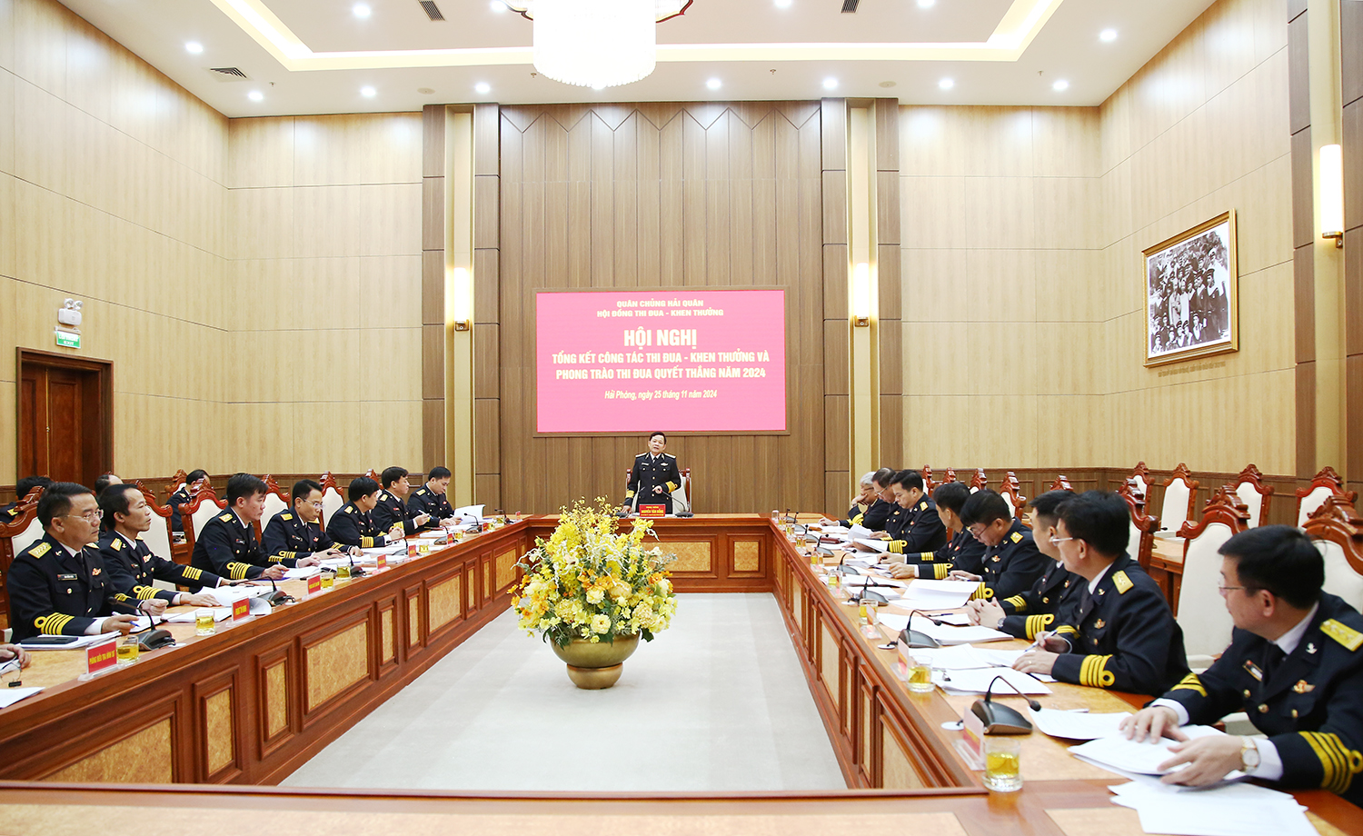 Sáng 25/11, tại Hải Phòng, Hội đồng thi đua - khen thưởng (TĐKT) Quân chủng Hải quân tổ chức Hội nghị tổng kết phong trào thi đua quyết thắng (TĐQT) và công tác khen thưởng năm 2024. Trung tướng Nguyễn Văn Bổng, Bí thư Đảng ủy, Chính ủy Hải quân, Chủ tịch Hội đồng TĐKT Quân chủng chủ trì.