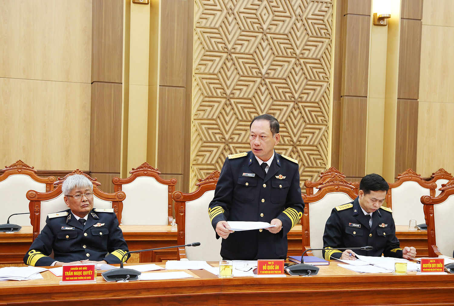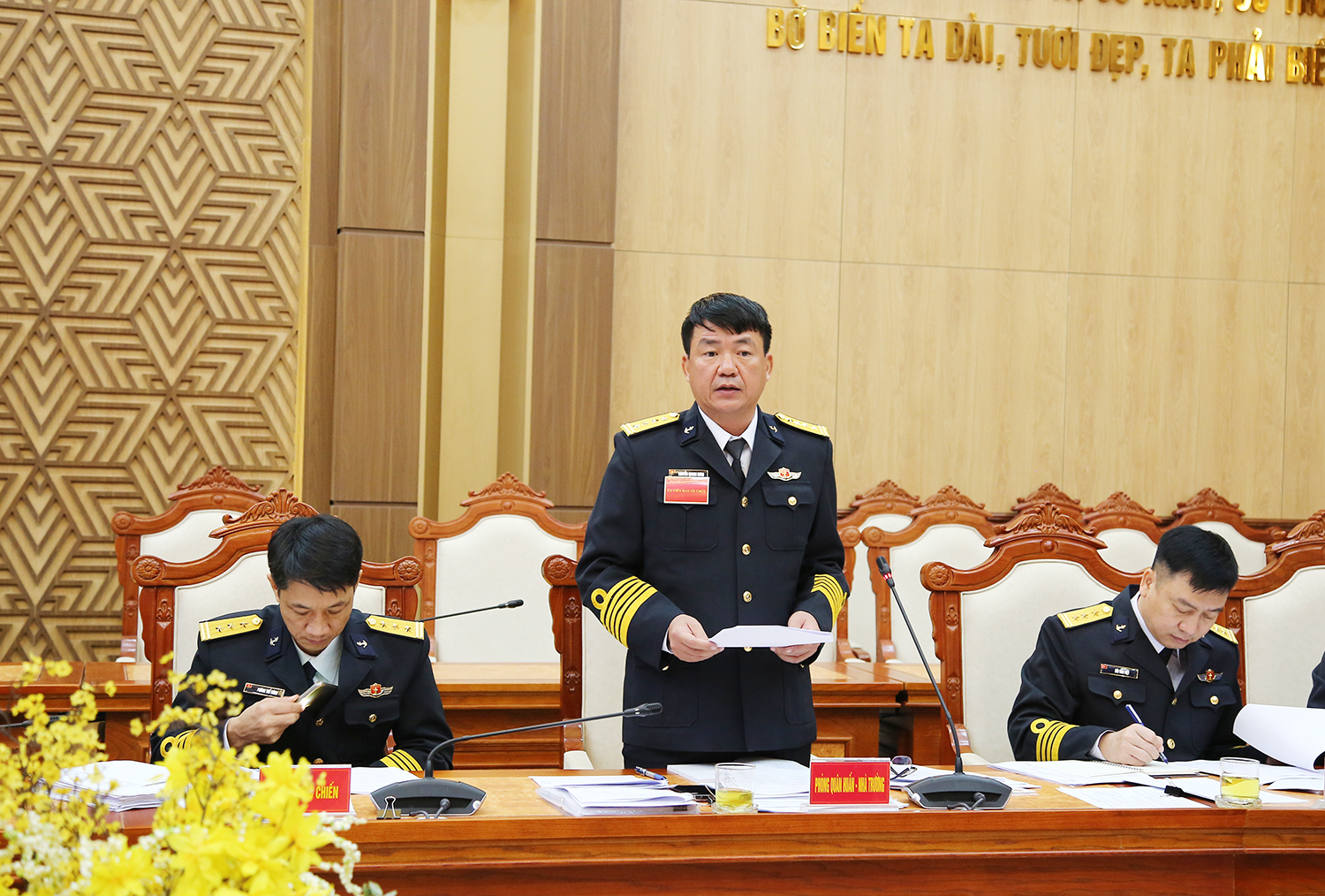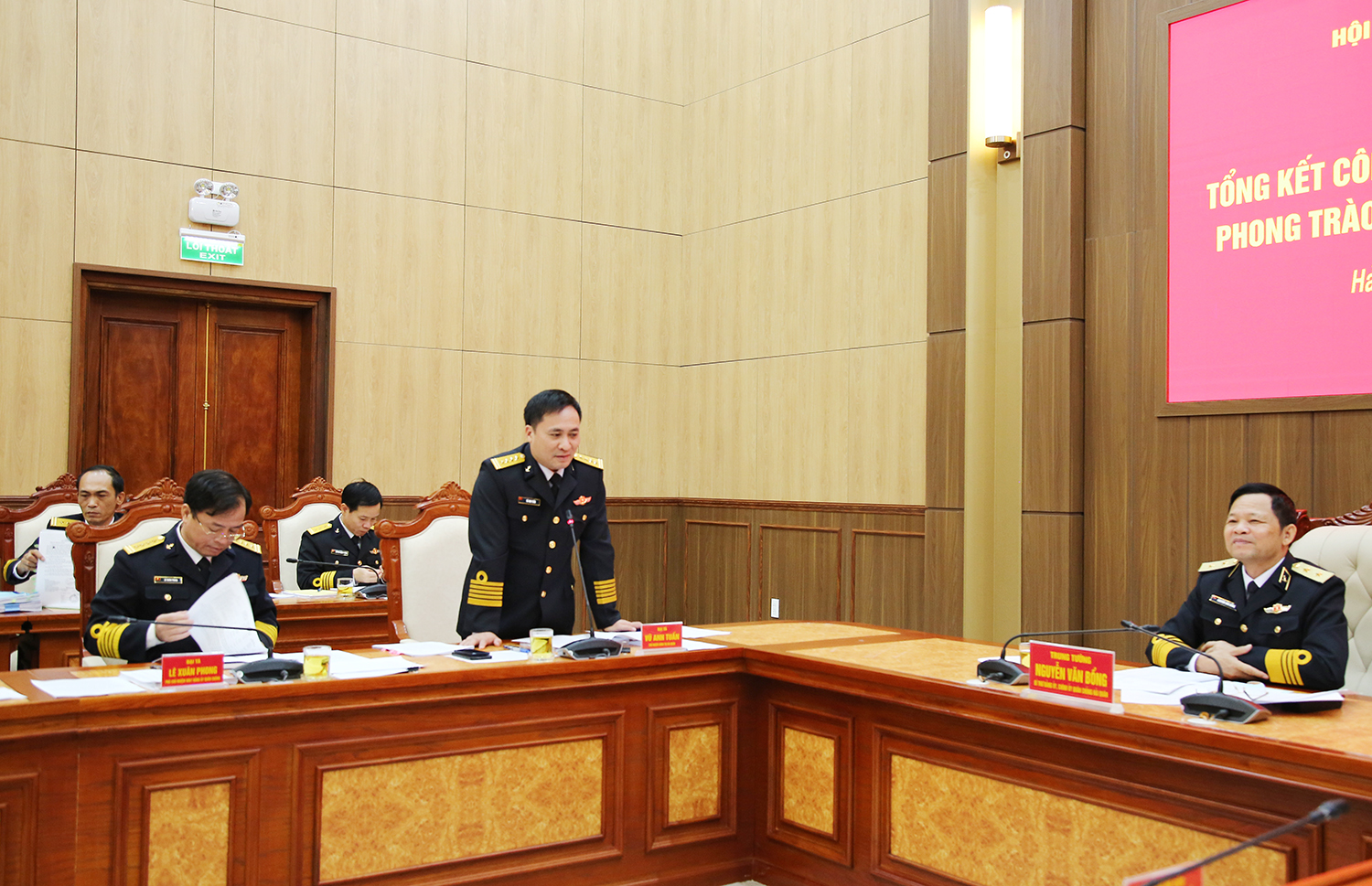 Trưởng Phòng Tuyên huấn (Cục Chính trị) - cơ quan thường trực của Hội đồng báo cáo kết quả phong trào TĐQT và công tác TĐKT năm 2024