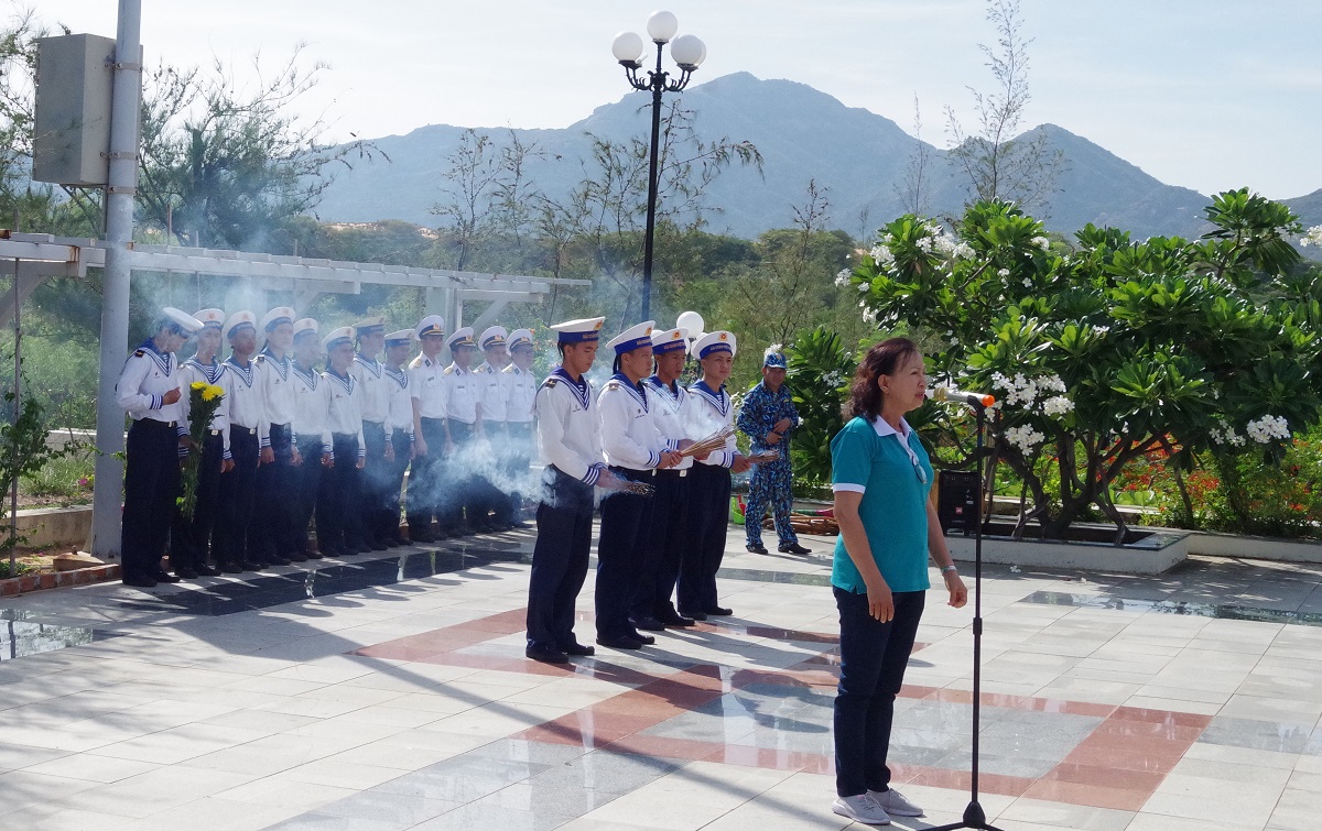 Đoàn công tác đã đến dâng hương tại nhà truyền thống Vùng 4, chùa Linh Nguyên và đặt vòng hoa viếng Tượng đài liệt sĩ tù chính trị Cam Ranh.