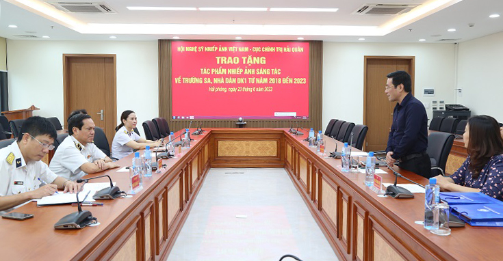 Chiều 23/6, tại Hải Phòng, Cục Chính trị Hải quân đã tiếp nhận 51 tác phẩm nhiếp ảnh về Trường Sa, Nhà giàn DK1 của Hội Nghệ sĩ nhiếp ảnh Việt Nam tặng. Tham dự buổi trao tặng có Chuẩn Đô đốc Phạm Văn Luyện, Phó Chủ nhiệm Chính trị Hải quân; ông Hà Hữu Đức, Ủy viên Ban chấp hành Hội Nghệ sĩ nhiếp ảnh Việt Nam, Giám đốc Trung tâm Lưu trữ và Tư liệu ảnh nghệ thuật Việt Nam.