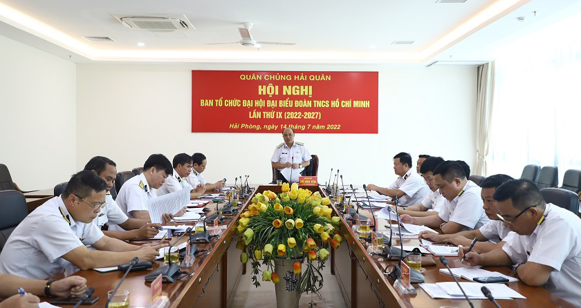 Sáng 14/7, tại Hải Phòng, Ban tổ chức Đại hội đại biểu Đoàn TNCS Hồ Chí Minh Quân chủng Hải quân lần thứ IX (2022-2027) họp báo cáo nội dung lần cuối công tác chuẩn bị tổ chức đại hội. Chuẩn Đô đốc Đỗ Văn Yên, Phó Chính ủy Hải quân chủ trì. Cùng dự có thủ trưởng Bộ Tham mưu, Cục Chính trị, Cục Hậu cần, Cục Kỹ thuật và đại diện các phòng chức năng Quân chủng.