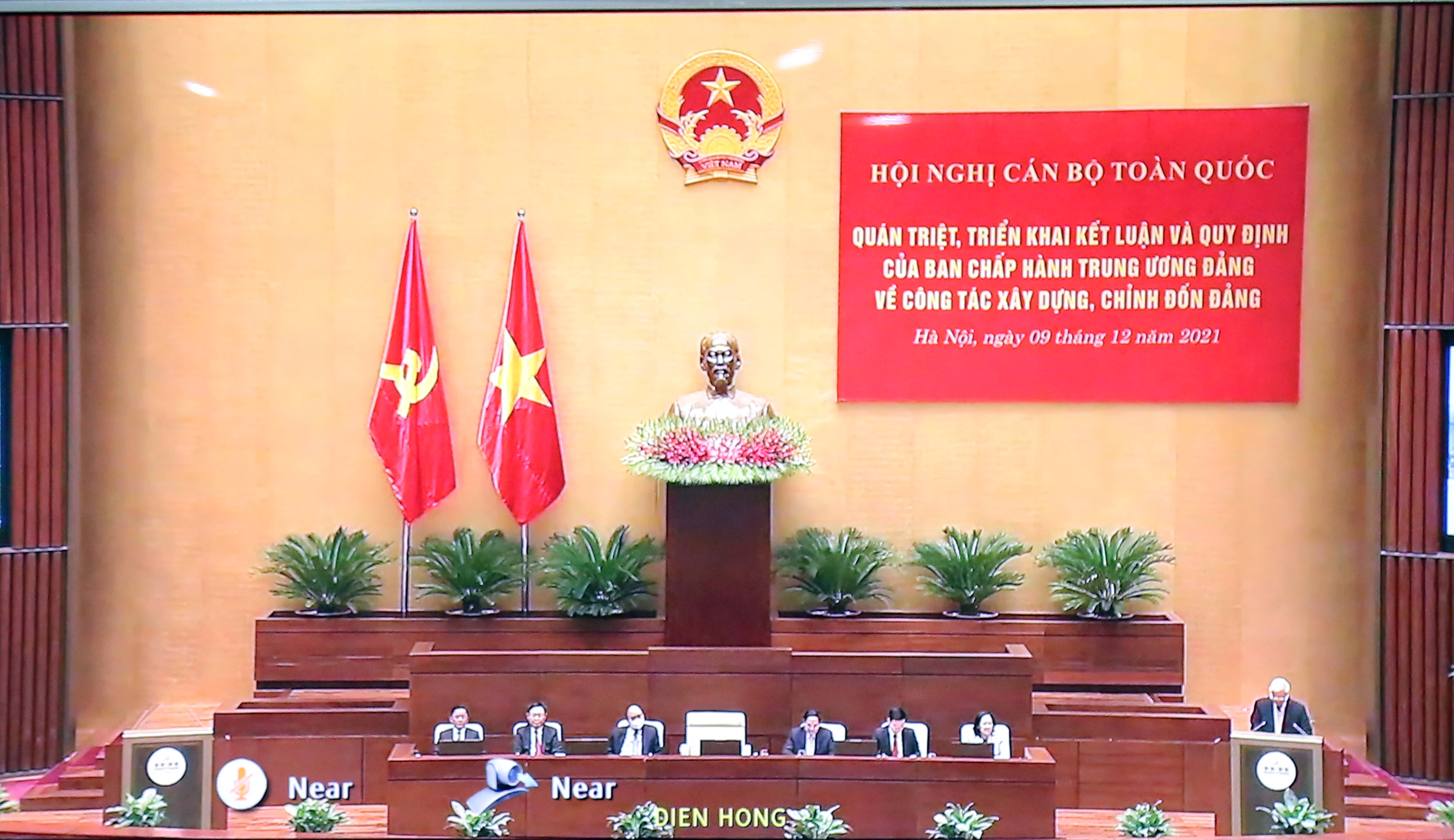 Sáng 9/12, Bộ Chính trị, Ban Bí thư Trung ương Đảng tổ chức Hội nghị cán bộ toàn quốc quán triệt, triển khai kết luận và quy định của Ban Chấp hành Trung ương Đảng về công tác xây dựng, chỉnh đốn Đảng. Tổng Bí thư Nguyễn Phú Trọng tới dự, chỉ đạo và chủ trì.