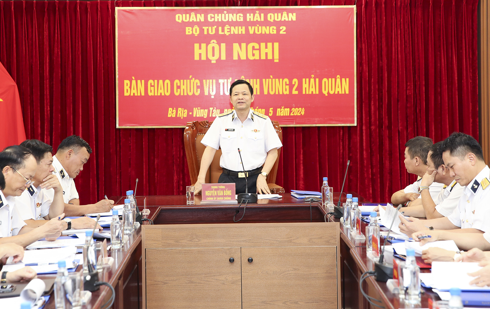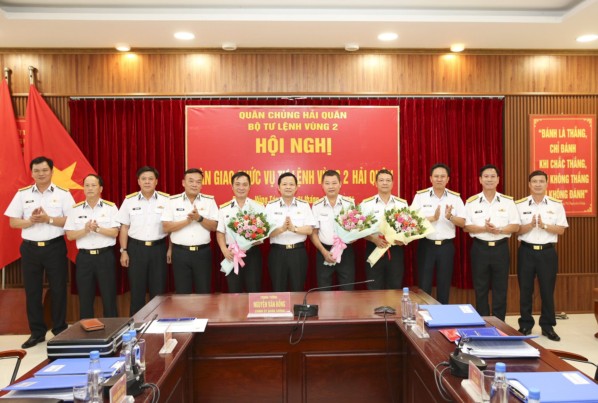 Chiều 31/5, tại TP. Vũng Tàu, tỉnh Bà Rịa - Vũng Tàu, Ban Thường vụ Đảng ủy Bộ Tư lệnh Hải quân tổ chức Hội nghị công bố, trao quyết định về công tác cán bộ và bàn giao chức trách, nhiệm vụ Tư lệnh Vùng 2 Hải quân. Trung tướng Nguyễn Văn Bổng, Bí thư Đảng ủy, Chính ủy Hải quân chủ trì.