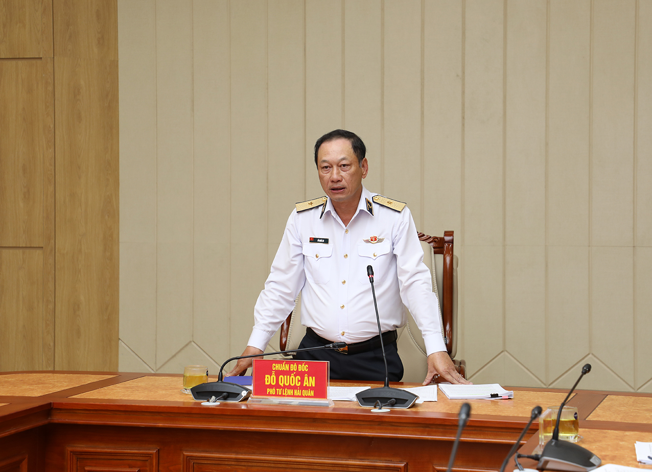 Chuẩn Đô đốc Đỗ Quốc Ân, Phó Tư lệnh Hải quân chủ trì hội nghị.