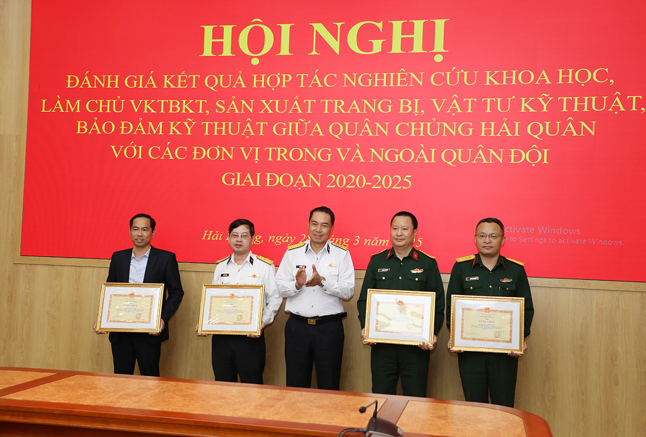 Dịp này, Bộ Tư lệnh Hải quân tặng thưởng Bằng khen cho 6 tập thể, 4 cá nhân có thành tích xuất sắc trong hợp tác bảo đảm kỹ thuật Hải quân giai đoạn 2020-2025.