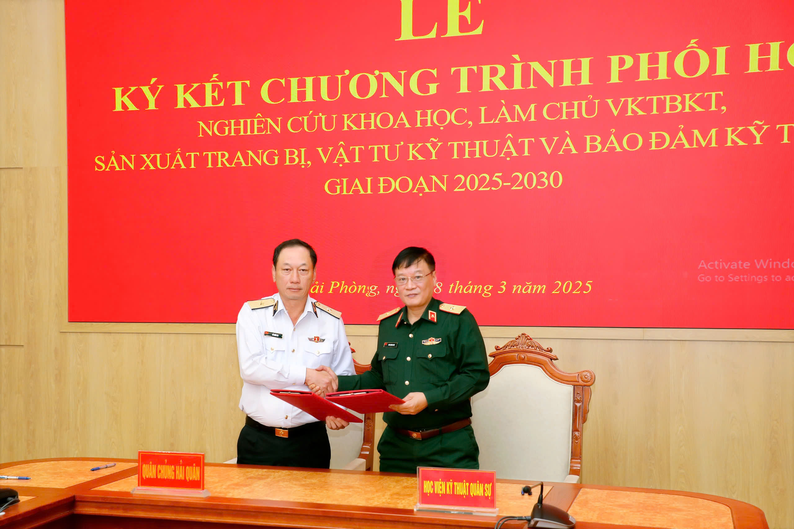 Tại hội nghị, Quân chủng Hải quân ký kết chương trình hợp tác nghiên cứu khoa học, làm chủ TBKT, sản xuất trang bị, vật tư kỹ thuật, bảo đảm kỹ thuật với các đơn vị trong và ngoài Quân đội giai đoạn 2025-2030.