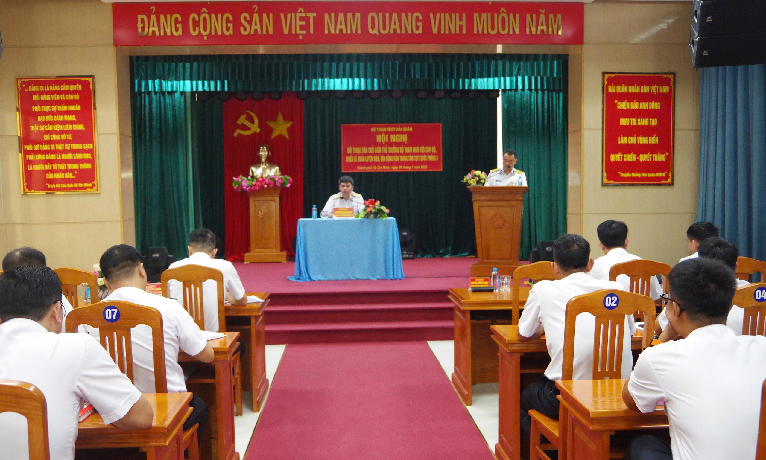 Chiều 4/7, tại TP Hồ Chí Minh, Bộ Tham mưu Hải quân tổ chức Hội nghị đối thoại dân chủ năm 2025 giữa thủ trưởng Bộ Tham mưu với cán bộ, chiến sĩ, huấn luyện viên, vận động viên (HLV, VĐV) Trung tâm Thể dục thể thao quốc phòng 5.