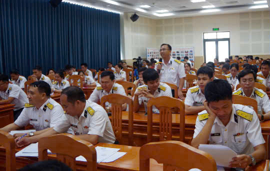 Chuẩn Đô đốc Hoàng Lương Ngọc, Bí thư Đảng ủy Bộ Tham mưu, Phó Tham mưu trưởng Hải quân chủ trì hội nghị.