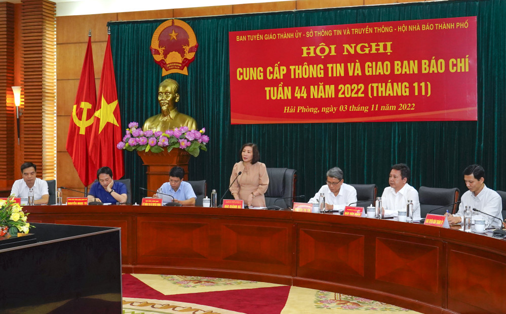 Chiều 3/11, Ban Tuyên giáo Thành ủy Hải Phòng chủ trì phối hợp với Sở Thông tin và Truyền thông, Hội Nhà báo thành phố tổ chức Hội nghị giao ban và cung cấp thông tin cho báo chí trên địa bàn thành phố tuần thứ 44 năm 2022 (tháng 11).
