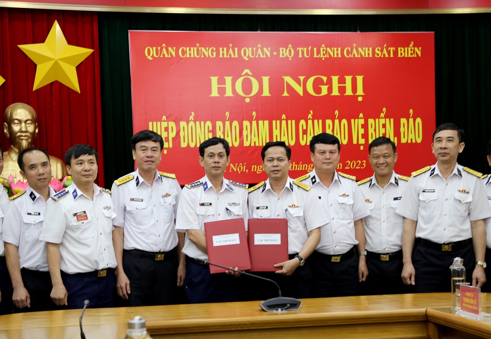 Sau ½ ngày làm việc, Cục Hậu cần Hải quân và Cục Hậu cần Cảnh sát biển đã hoàn thiện, ký kết Kế hoạch tổ chức hiệp đồng bảo đảm hậu cần tác chiến bảo vệ chủ quyền biển, đảo.