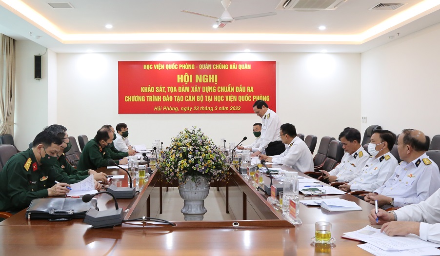 Chiều 23/3, tại Hải Phòng, Học viện Quốc phòng phối hợp với Quân chủng Hải quân tổ chức Hội nghị khảo sát, tọa đàm xây dựng chuẩn đầu ra chương trình đào tạo cán bộ tại Học viện Quốc phòng.