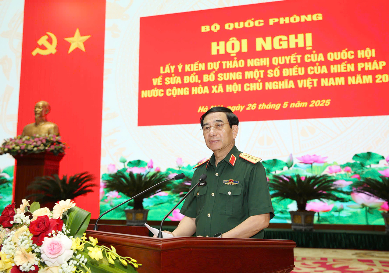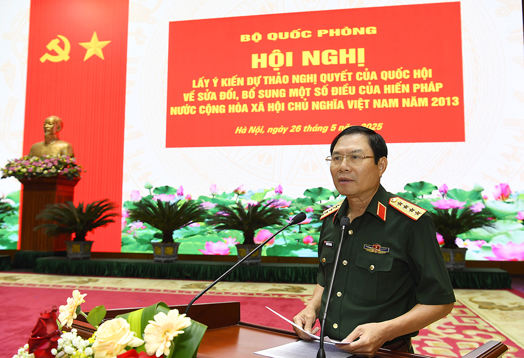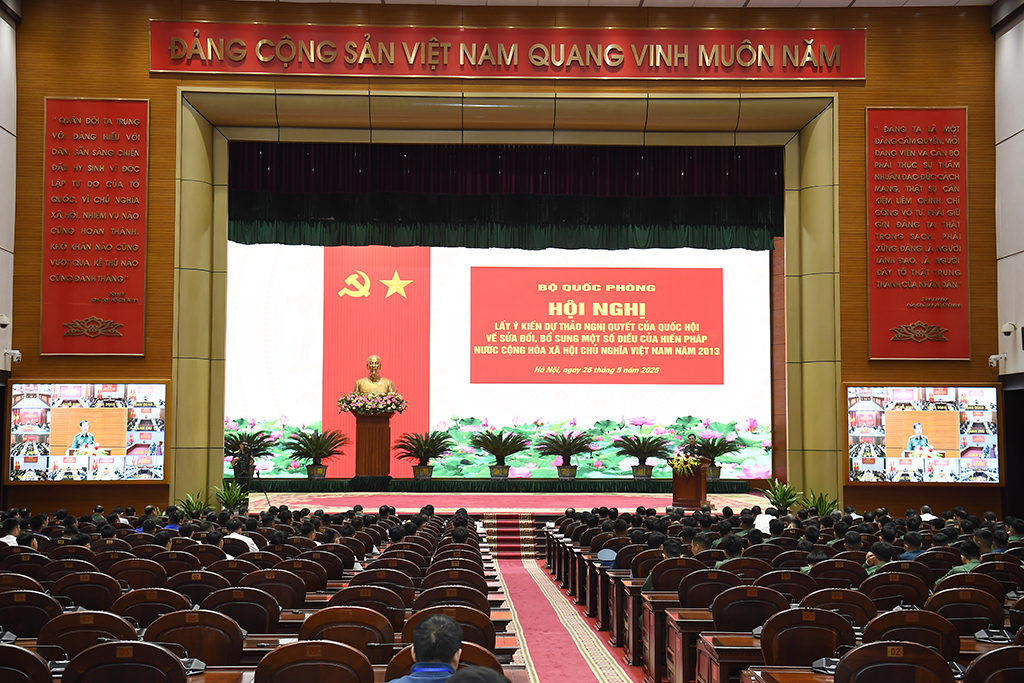 Sáng 26/5, tại Hội trường Bộ Quốc phòng và 48 điểm cầu trong toàn quân, Bộ Quốc phòng tổ chức Hội nghị trực tiếp và trực tuyến lấy ý kiến dự thảo sửa đổi Nghị quyết của Quốc hội về sửa đổi, bổ sung một số điều của Hiến pháp nước Cộng hòa xã hội chủ nghĩa Việt Nam năm 2013.