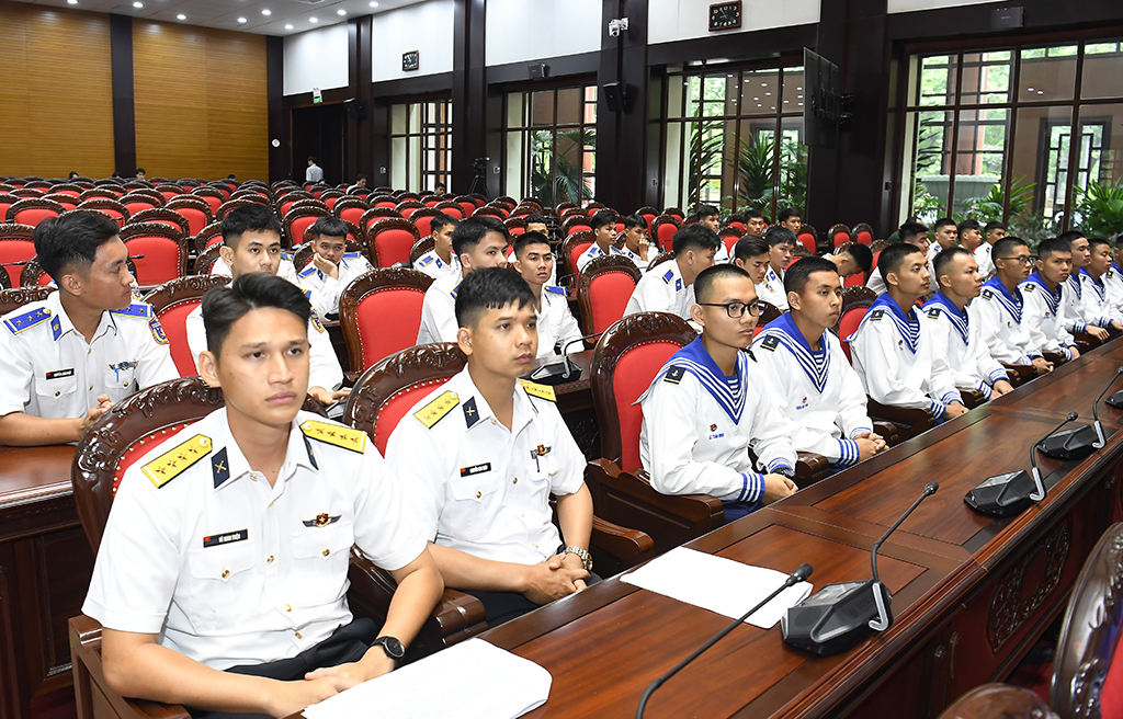 Cán bộ, chiến sĩ Hải quân tại điểm cầu Hội trường Bộ Quốc phòng