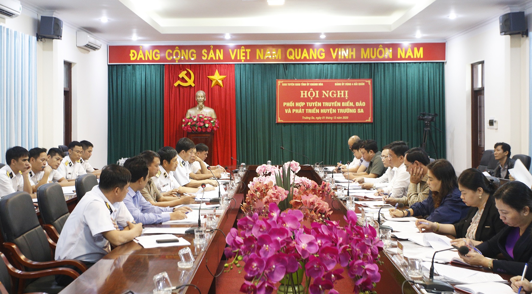 Sáng 1-12, tại Khánh Hòa, Ban Tuyên giáo Tỉnh ủy Khánh Hòa và Đảng ủy Vùng 4 Hải quân tổ chức Hội nghị phối hợp tuyên truyền biển, đảo và phát triển huyện đảo Trường Sa. Đồng chí Hồ Văn Mừng, Ủy viên Ban Thường vụ, Trưởng Ban Tuyên giáo Tỉnh ủy Khánh Hòa và Chuẩn Đô đốc Ngô Văn Thuân, Bí thư Đảng ủy, Chính ủy Vùng 4 đồng chủ trì.