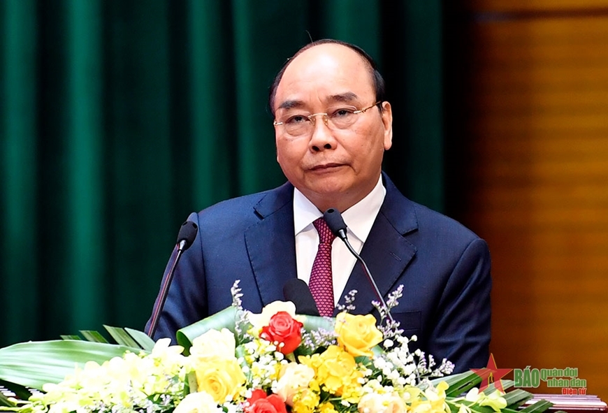 Chủ tịch nước Nguyễn Xuân Phúc phát biểu chỉ đạo. Ảnh: QĐND