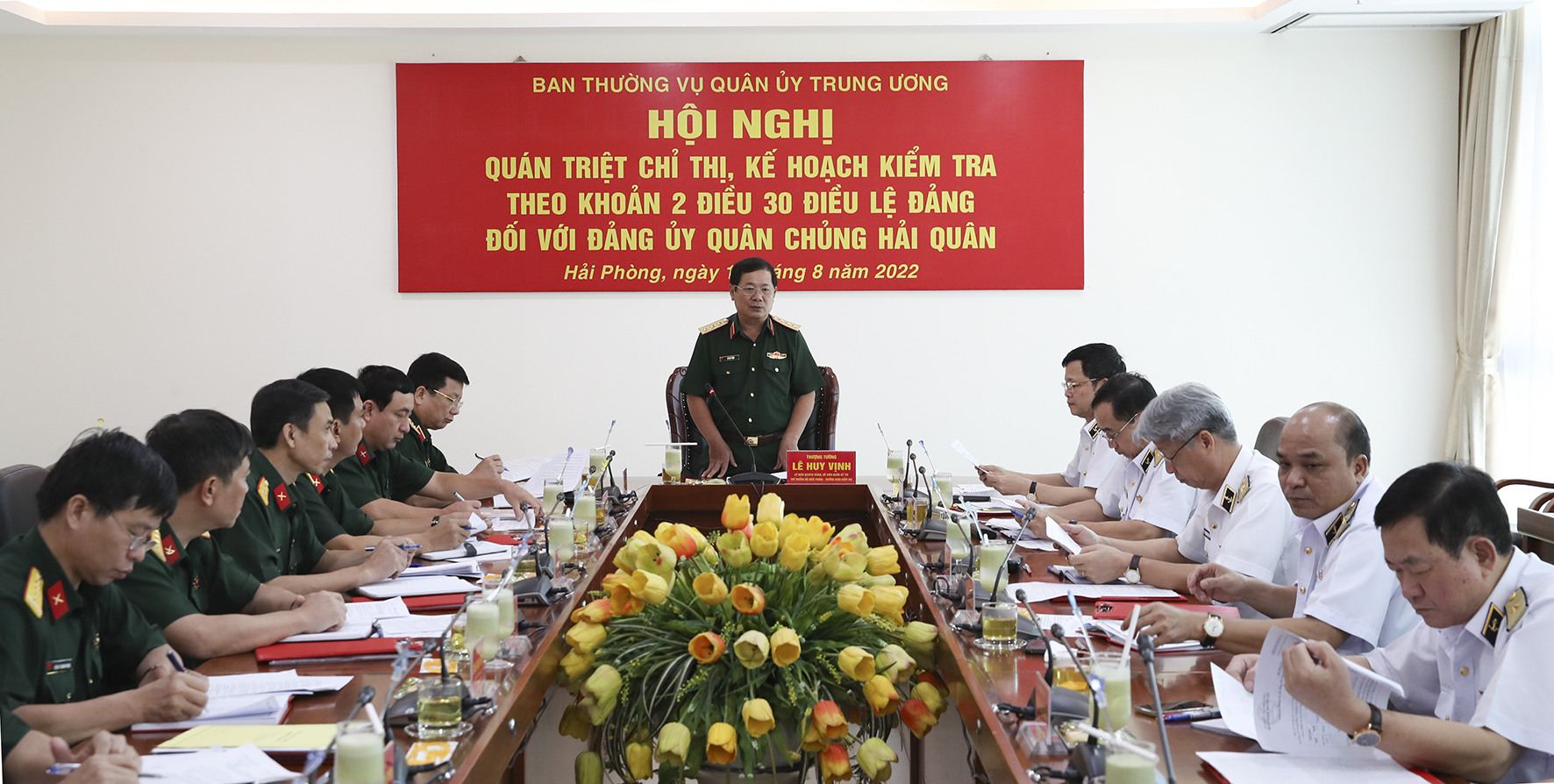 Sáng 19/8, tại TP. Hải Phòng, Ban Thường vụ Quân ủy Trung ương tổ chức Hội nghị quán triệt chỉ thị, kế hoạch kiểm tra của Quân ủy Trung ương đối với Đảng ủy Quân chủng Hải quân theo Khoản 2, Điều 30, Điều lệ Đảng Cộng sản Việt Nam. Thượng tướng Lê Huy Vịnh, Ủy viên Trung ương Đảng, Ủy viên Quân ủy Trung ương, Thứ trưởng Bộ Quốc phòng, Trưởng đoàn kiểm tra chủ trì.