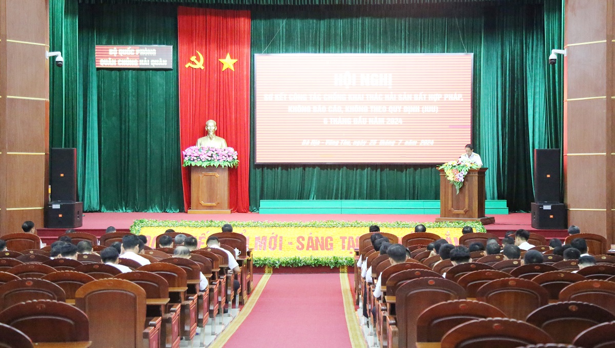 Chiều 25/7, tại Căn cứ Long Sơn, Quân chủng Hải quân tổ chức Hội nghị sơ kết công tác chống khai thác hải sản bất hợp pháp, không báo cáo, không theo quy định (IUU) 6 tháng đầu năm 2024. Chuẩn Đô đốc Nguyễn Đình Hùng, Phó Tư lệnh Hải quân chủ trì. Cùng dự có Chuẩn Đô đốc Phạm Văn Luyện, Phó Chủ nhiệm Chính trị Hải quân và đại biểu các cơ quan, đơn vị trong Quân chủng.