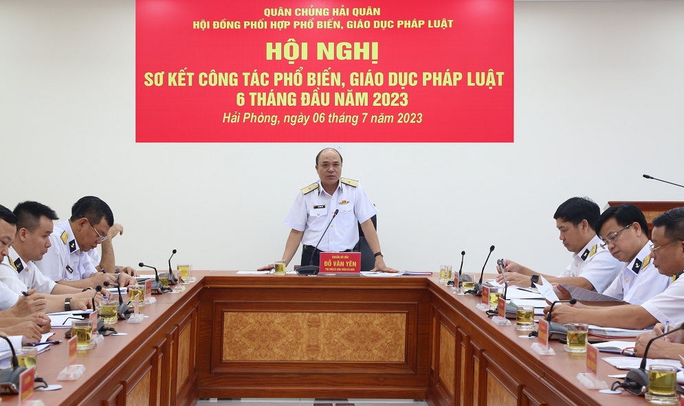 Sáng 6/7, Chuẩn Đô đốc Đỗ Văn Yên, Phó Chính ủy Hải quân, Chủ tịch Hội đồng phối hợp phổ biến, giáo dục pháp luật chủ trì Hội nghị sơ kết công tác phối hợp phổ biến, giáo dục pháp luật 6 tháng đầu năm 2023. Cùng dự có thủ trưởng Bộ Tham mưu, Cục Chính trị, Cục Hậu cần, Cục Kỹ thuật và đại diện một số cơ quan chức năng Quân chủng.