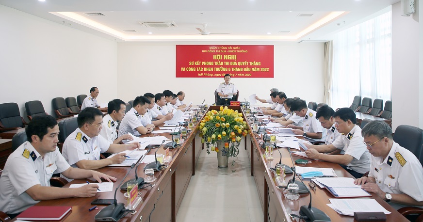 Sáng 5/7, tại Hải Phòng, Hội đồng thi đua-khen thưởng (TĐKT) Quân chủng Hải quân tổ chức Hội nghị sơ kết phong trào thi đua quyết thắng (TĐQT) và công tác TĐKT 6 tháng đầu năm 2022. Trung tướng Nguyễn Văn Bổng, Bí thư Đảng ủy, Chính ủy Hải quân, Chủ tịch Hội đồng TĐKT Quân chủng chủ trì.